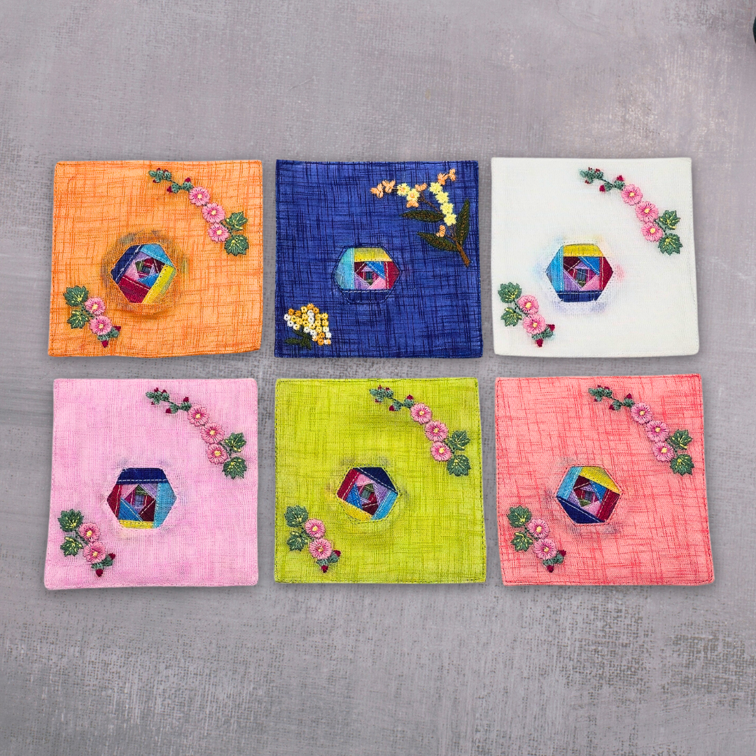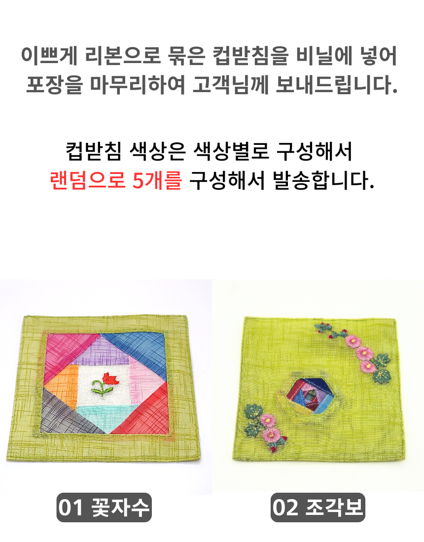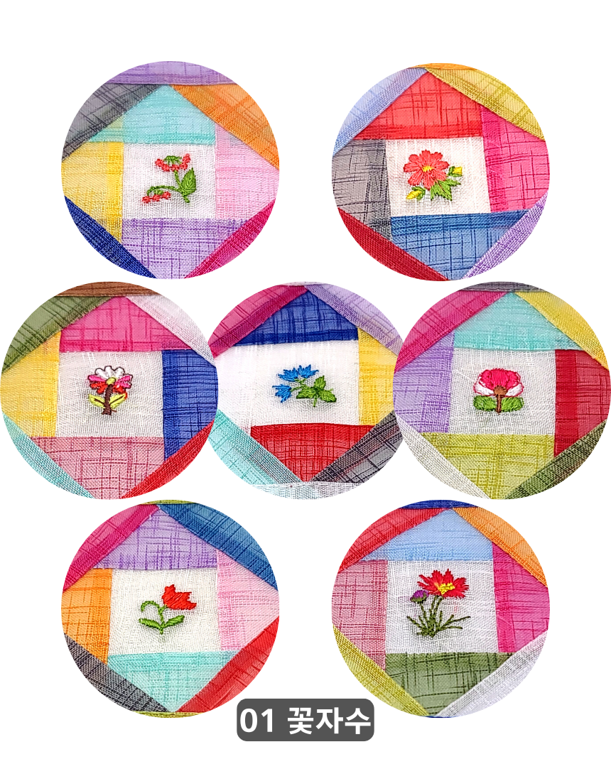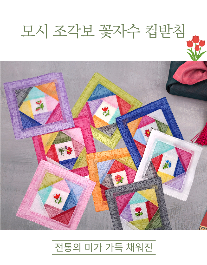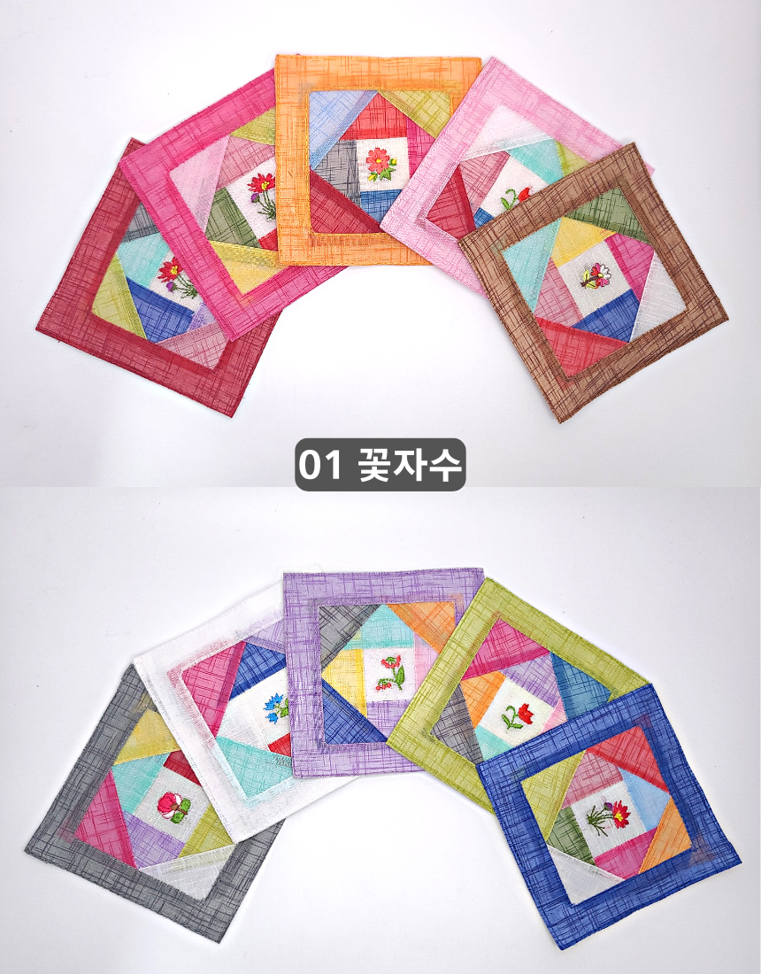 전통 모시 조각보 자수 컵받침 5P 세트 코스터 외국인선물 한국기념품