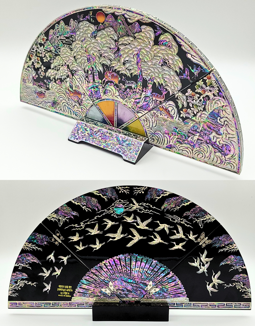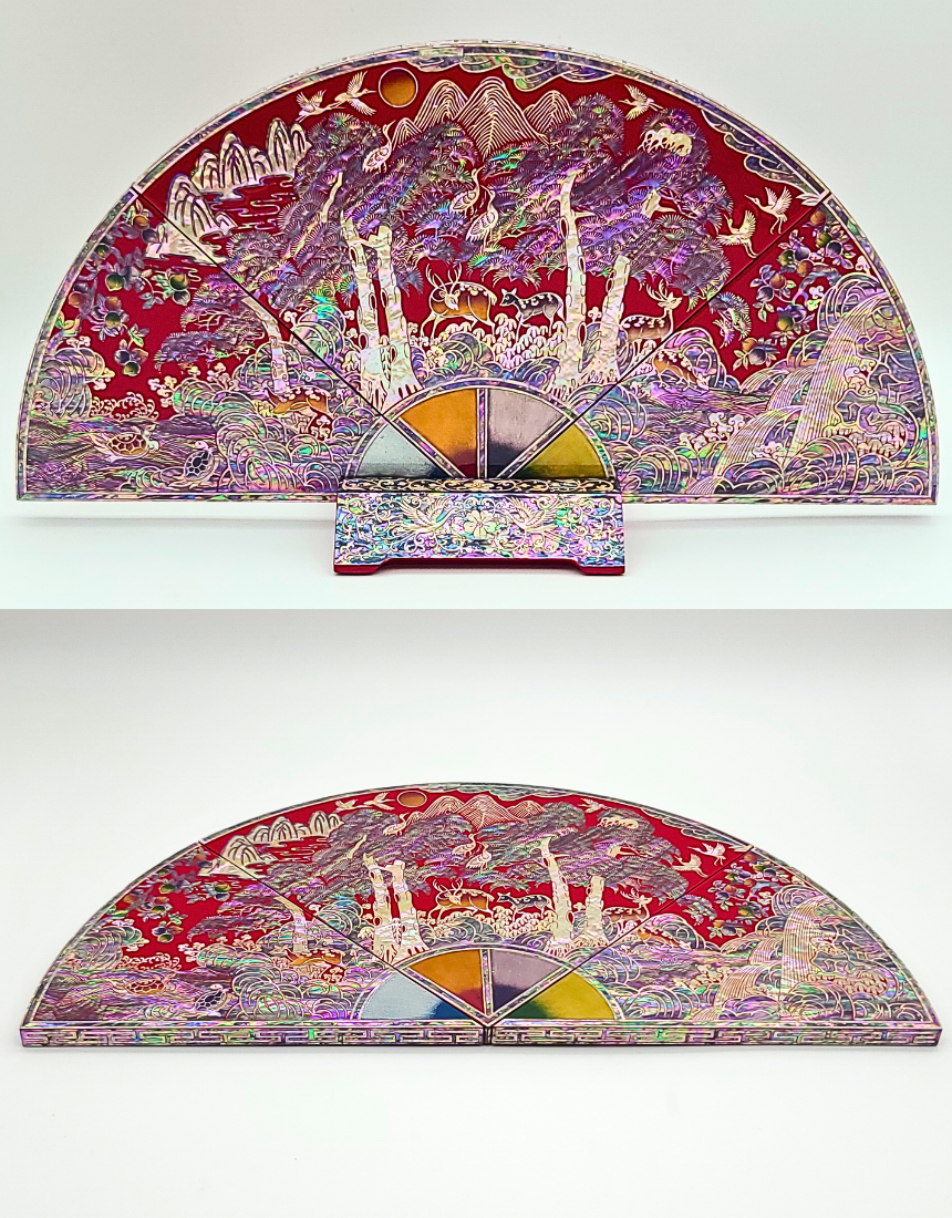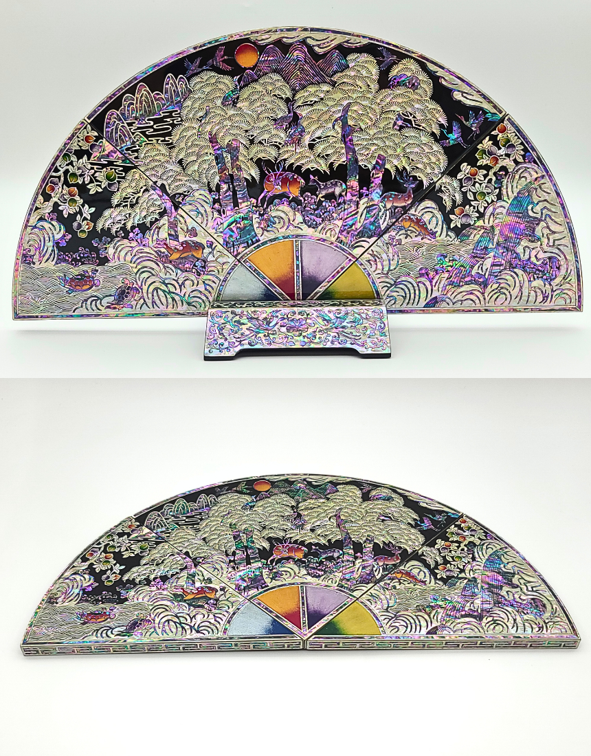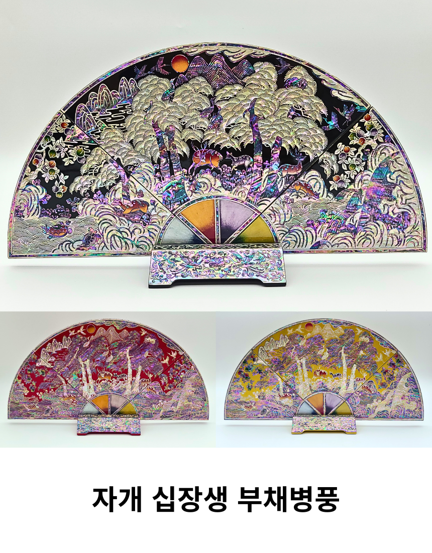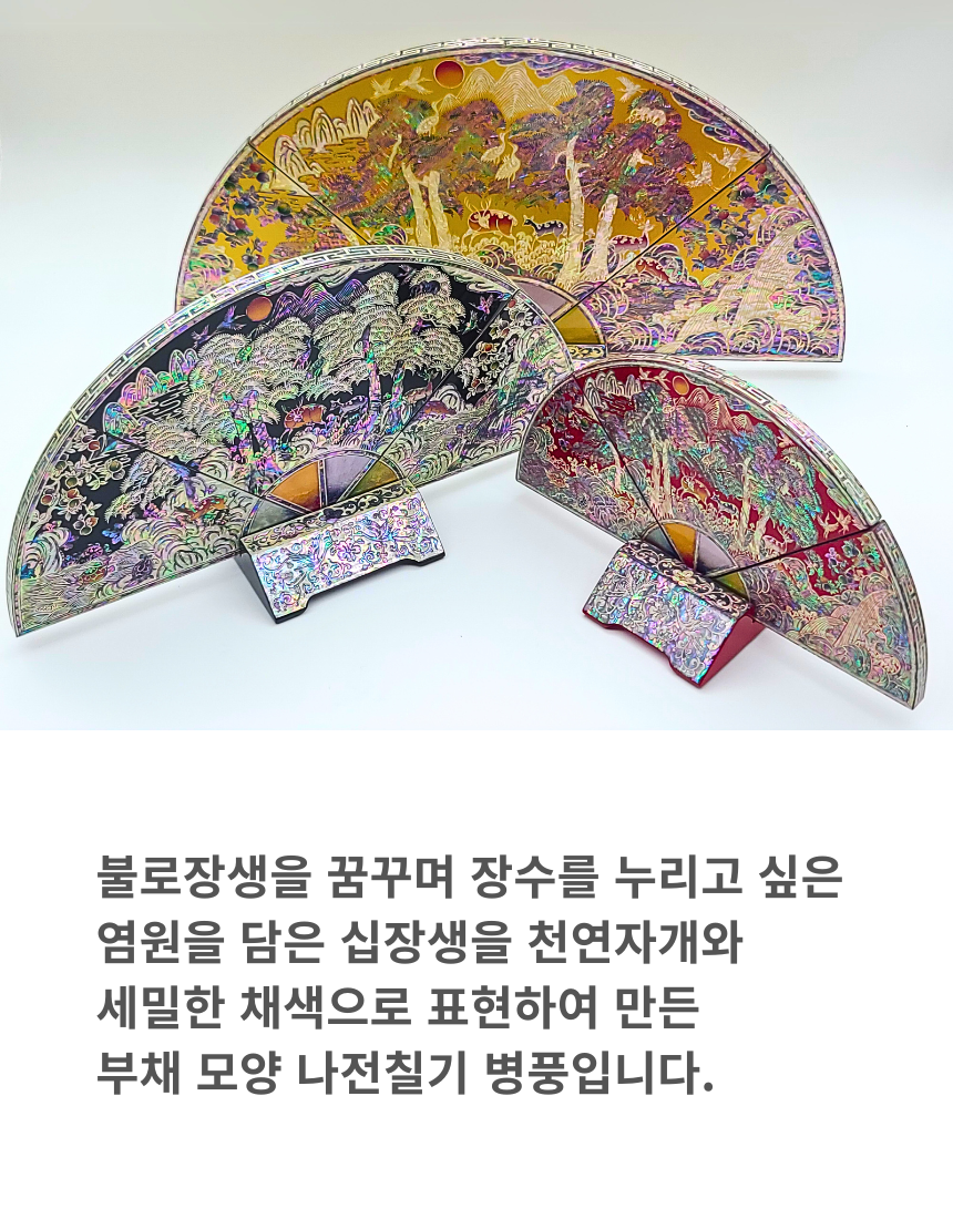 나전칠기 자개 십장생 부채병풍 한국 전통 공예품 기념품 외국인 선물