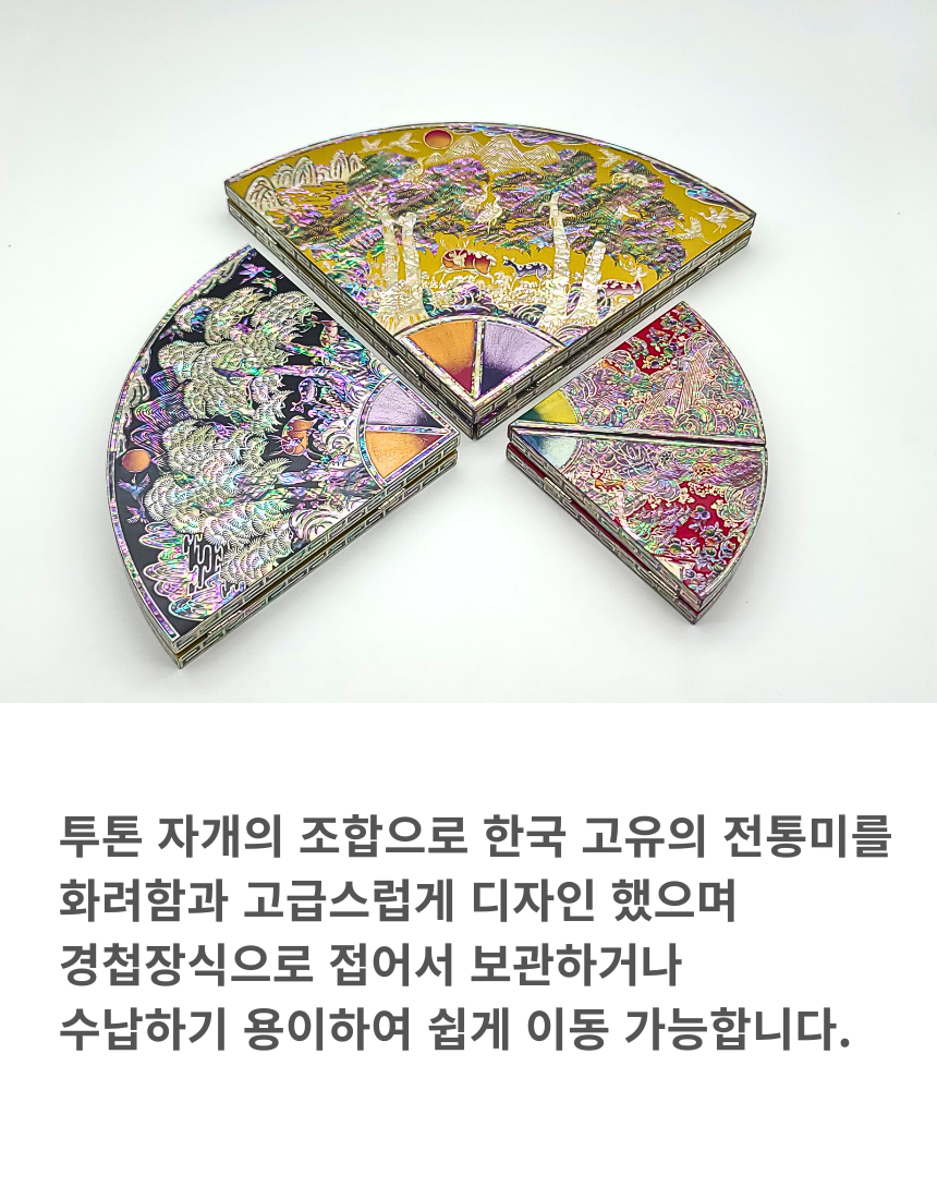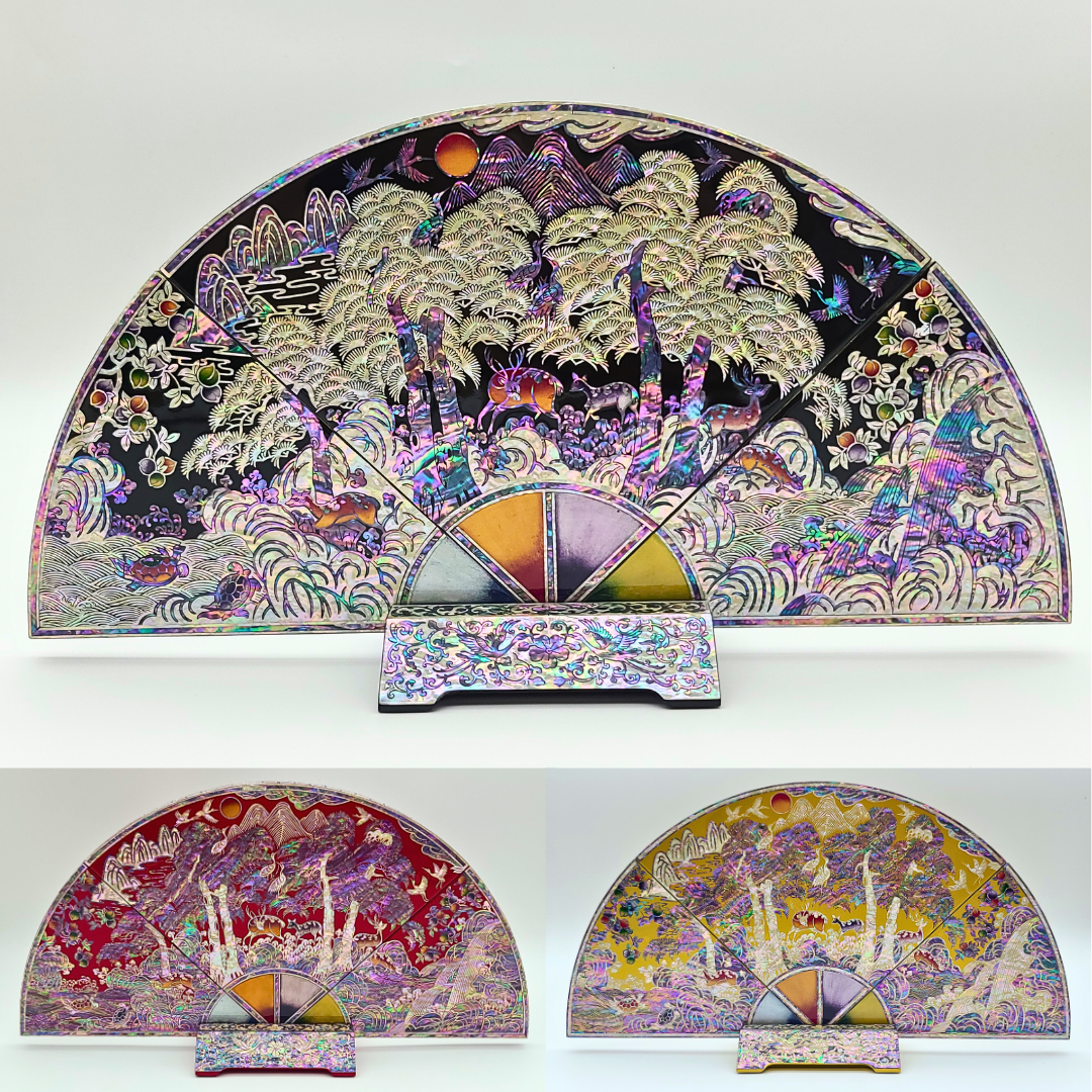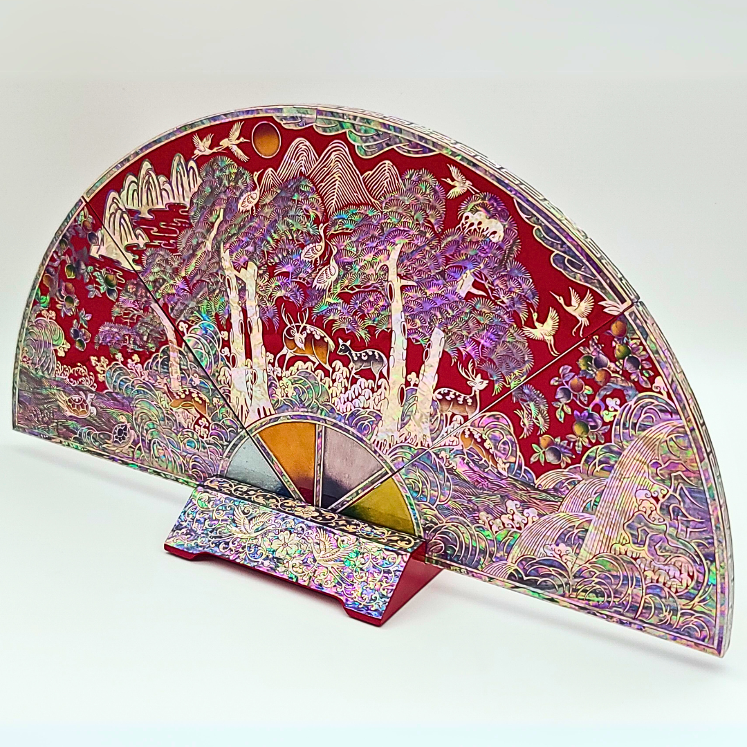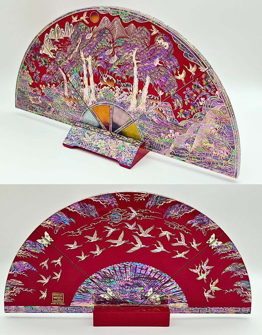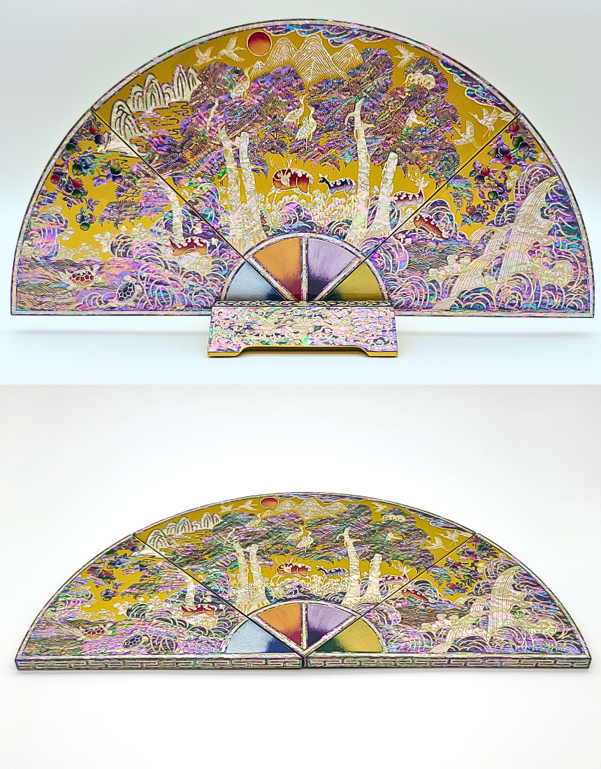 나전칠기 자개 십장생 부채병풍 한국 전통 공예품 기념품 외국인 선물