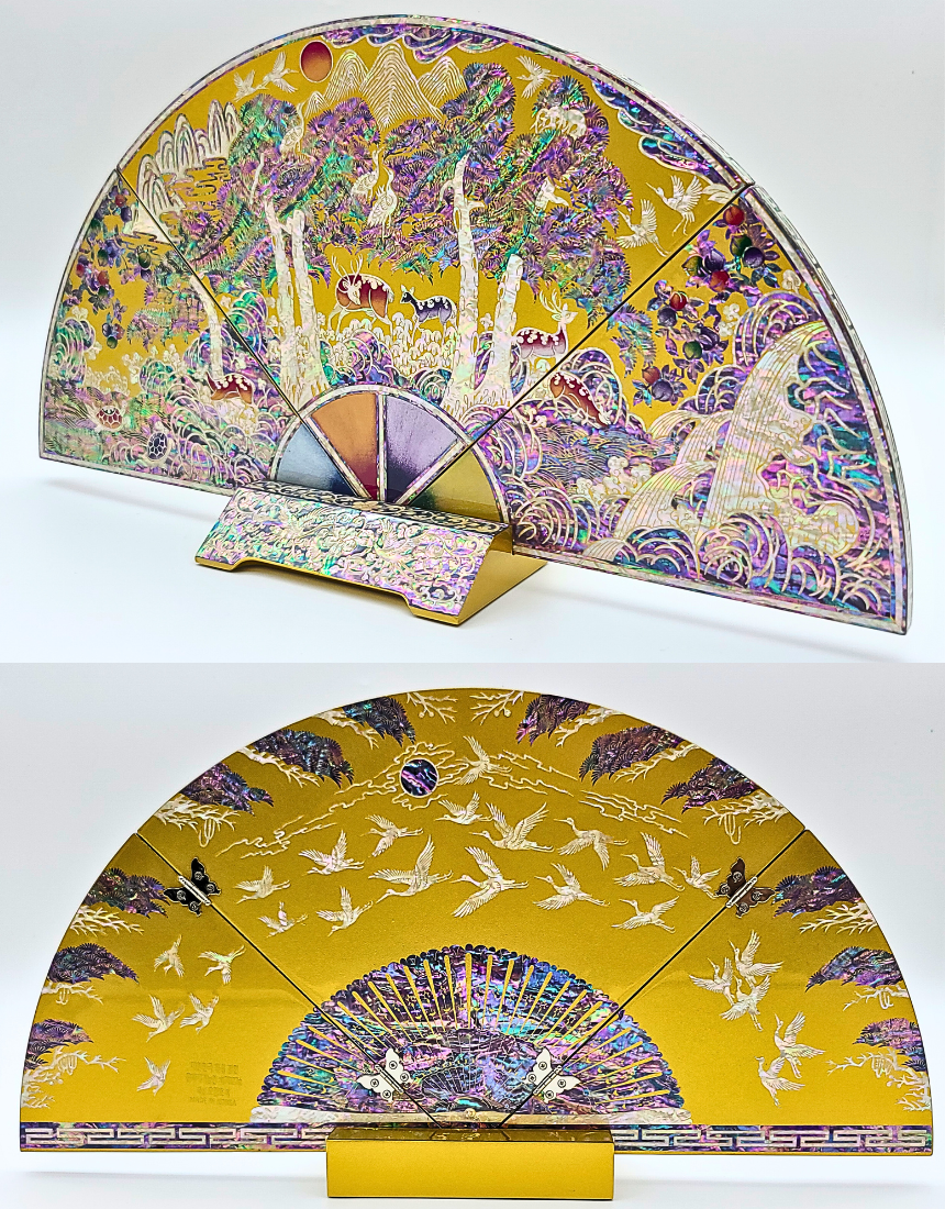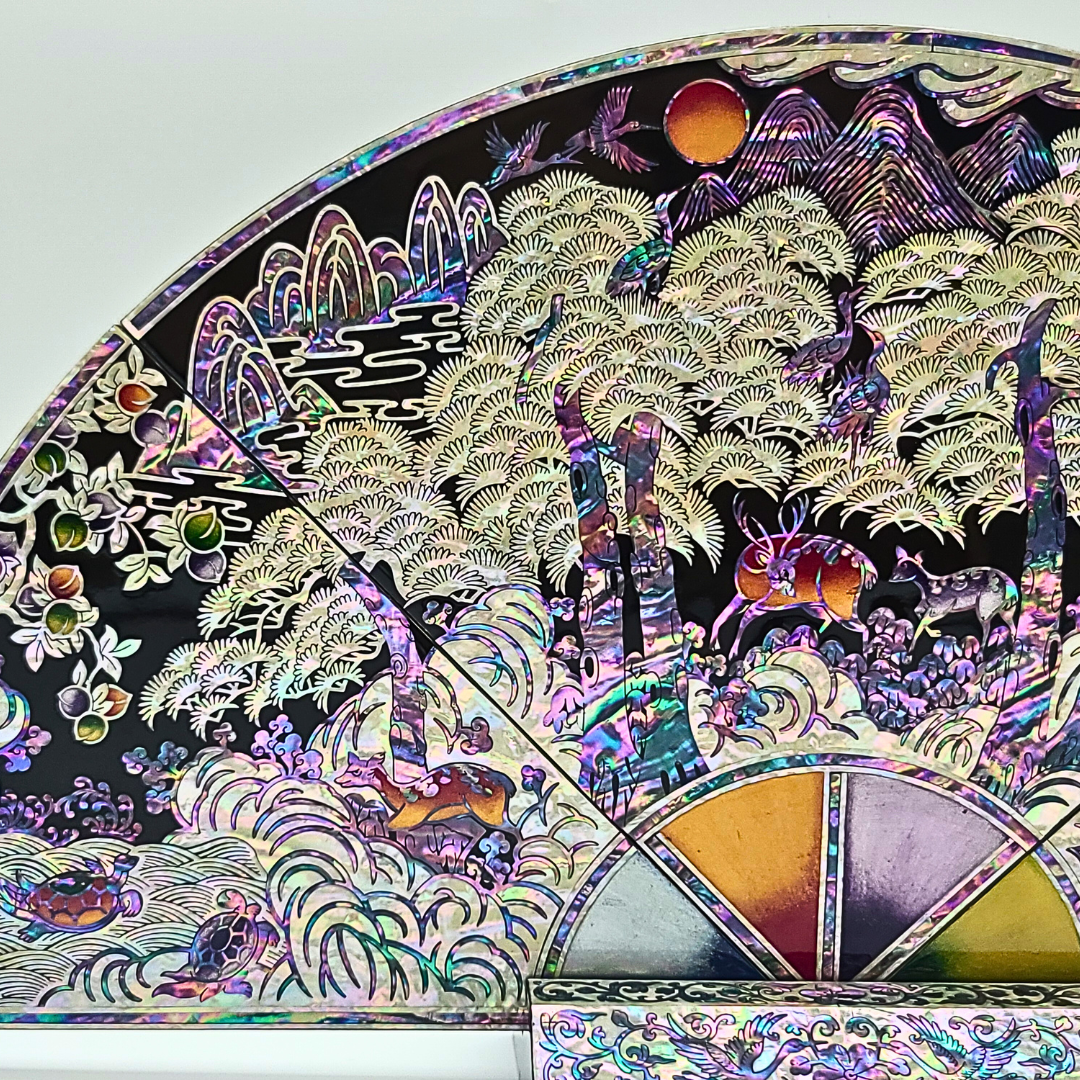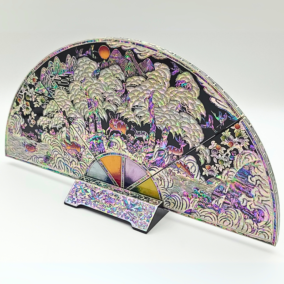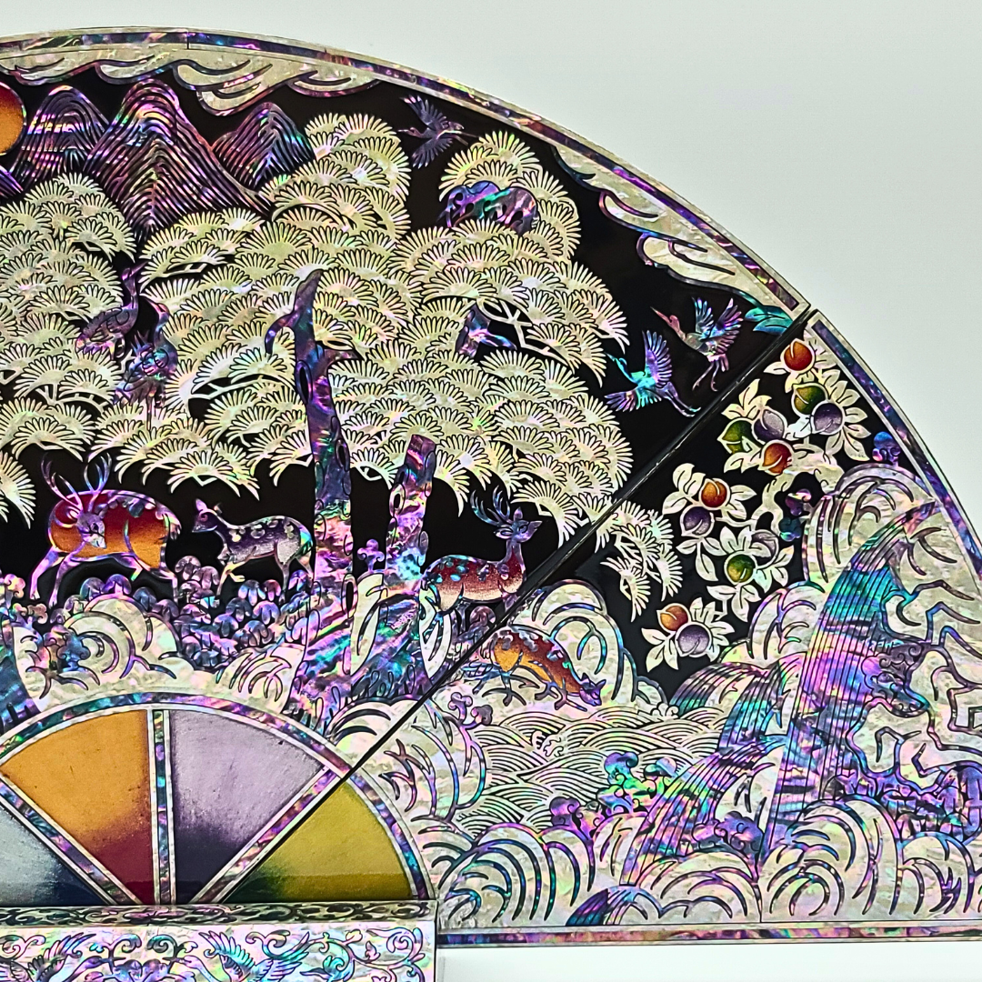 나전칠기 자개 십장생 부채병풍 한국 전통 공예품 기념품 외국인 선물