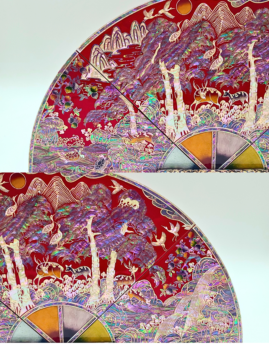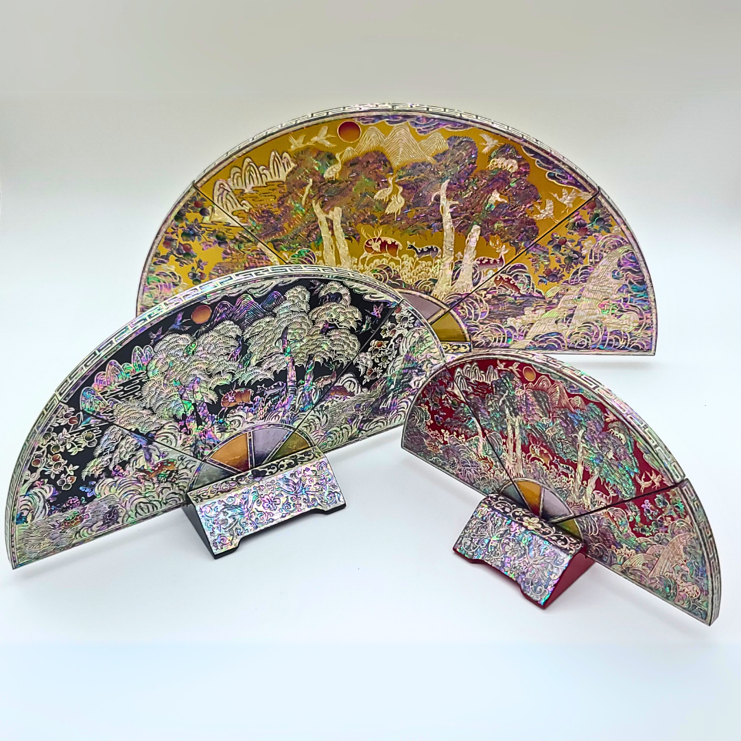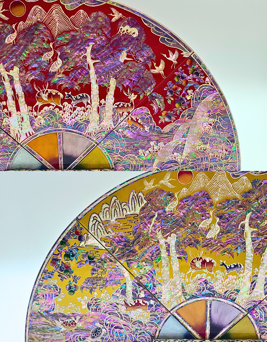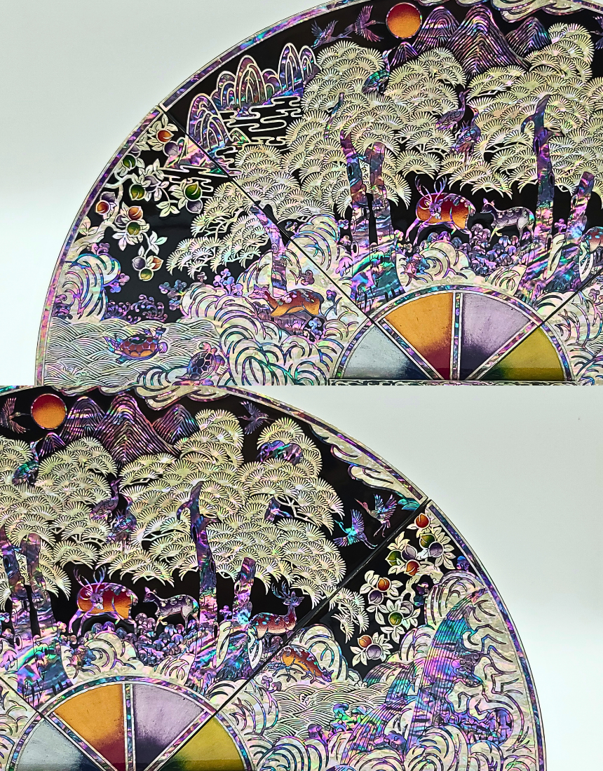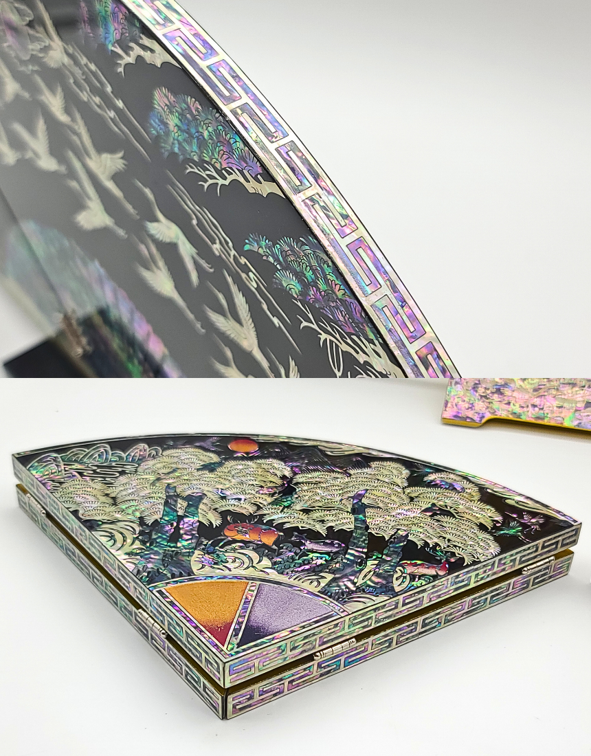 나전칠기 자개 십장생 부채병풍 한국 전통 공예품 기념품 외국인 선물