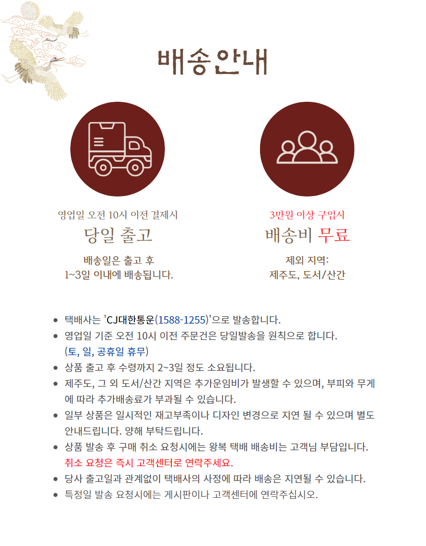 퀵 서비스 당일 발송 및 방문 수령 가능