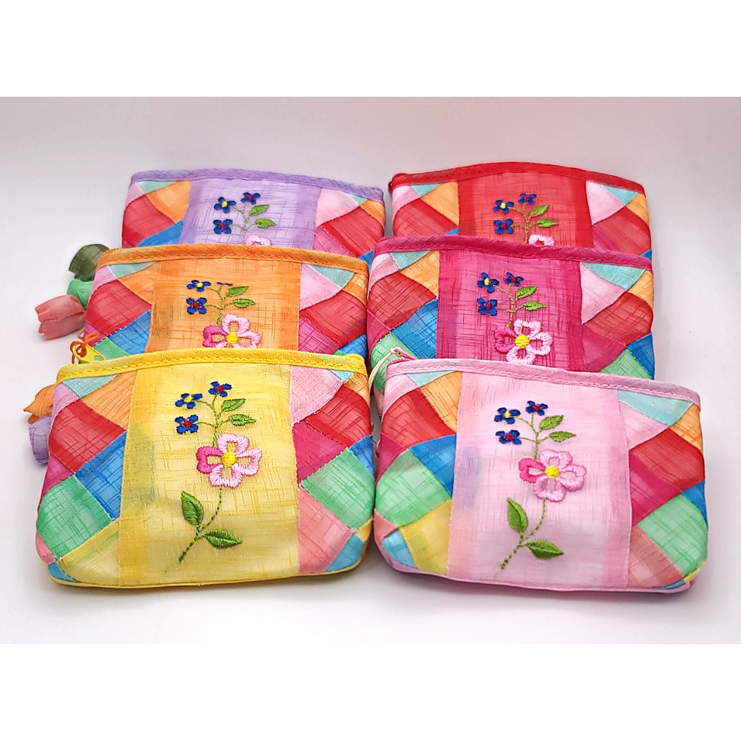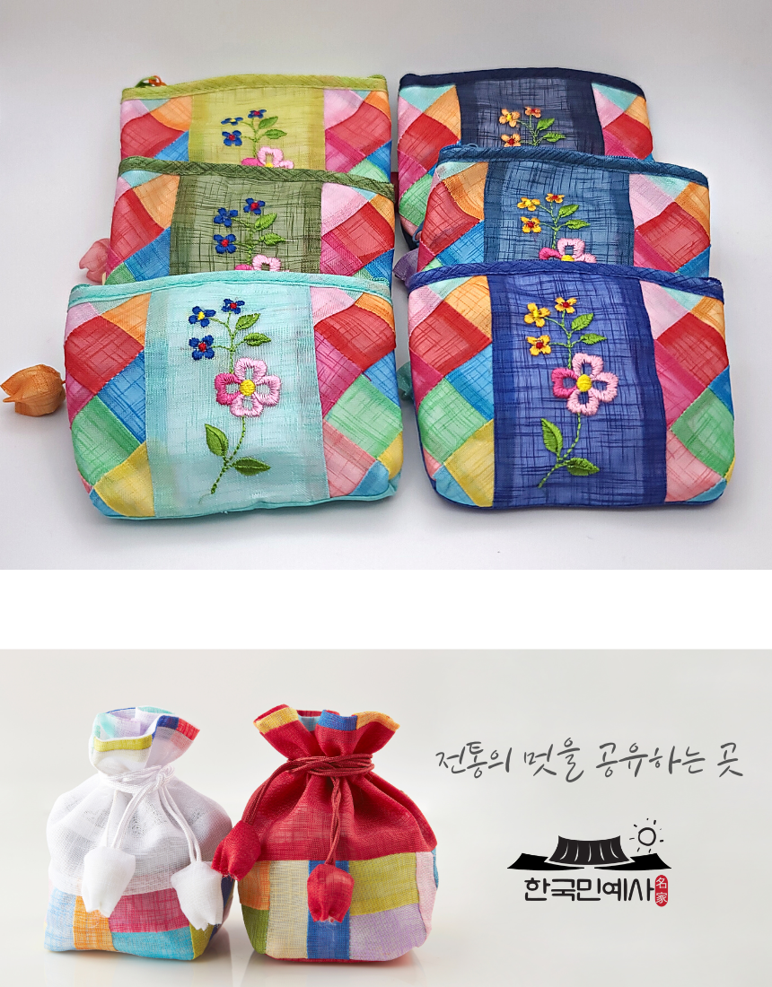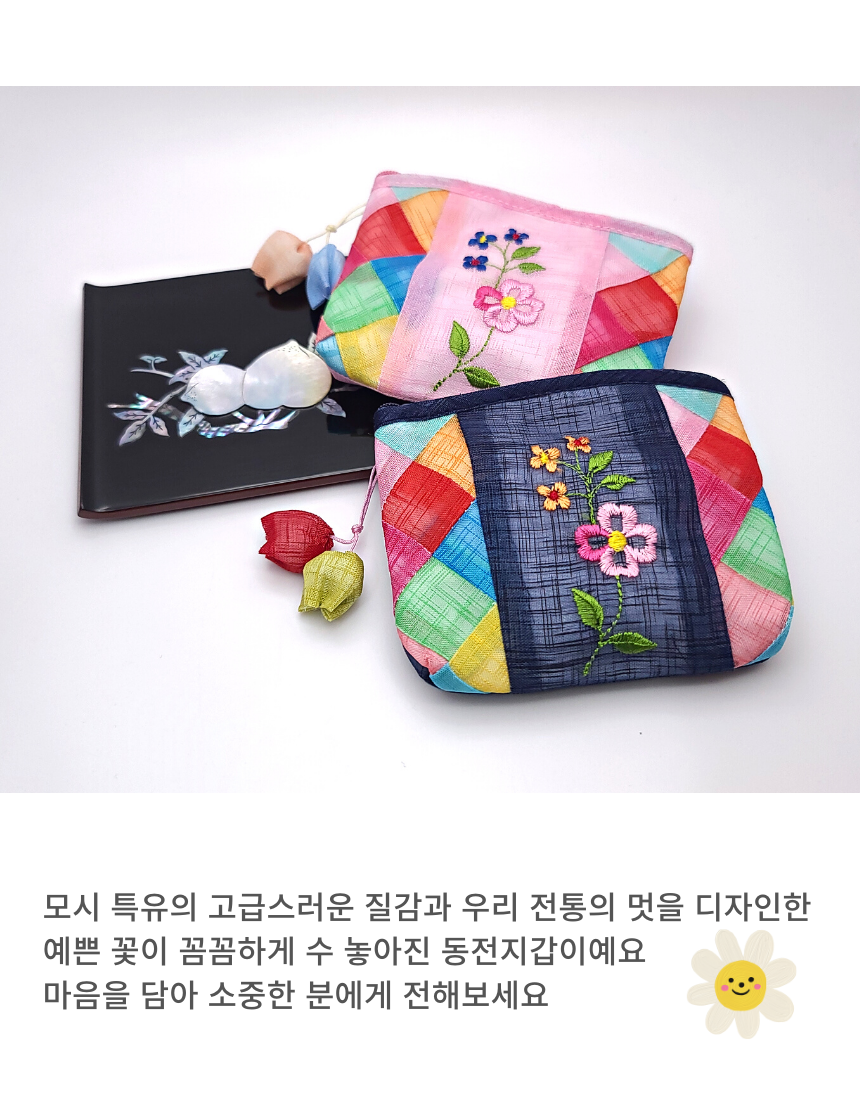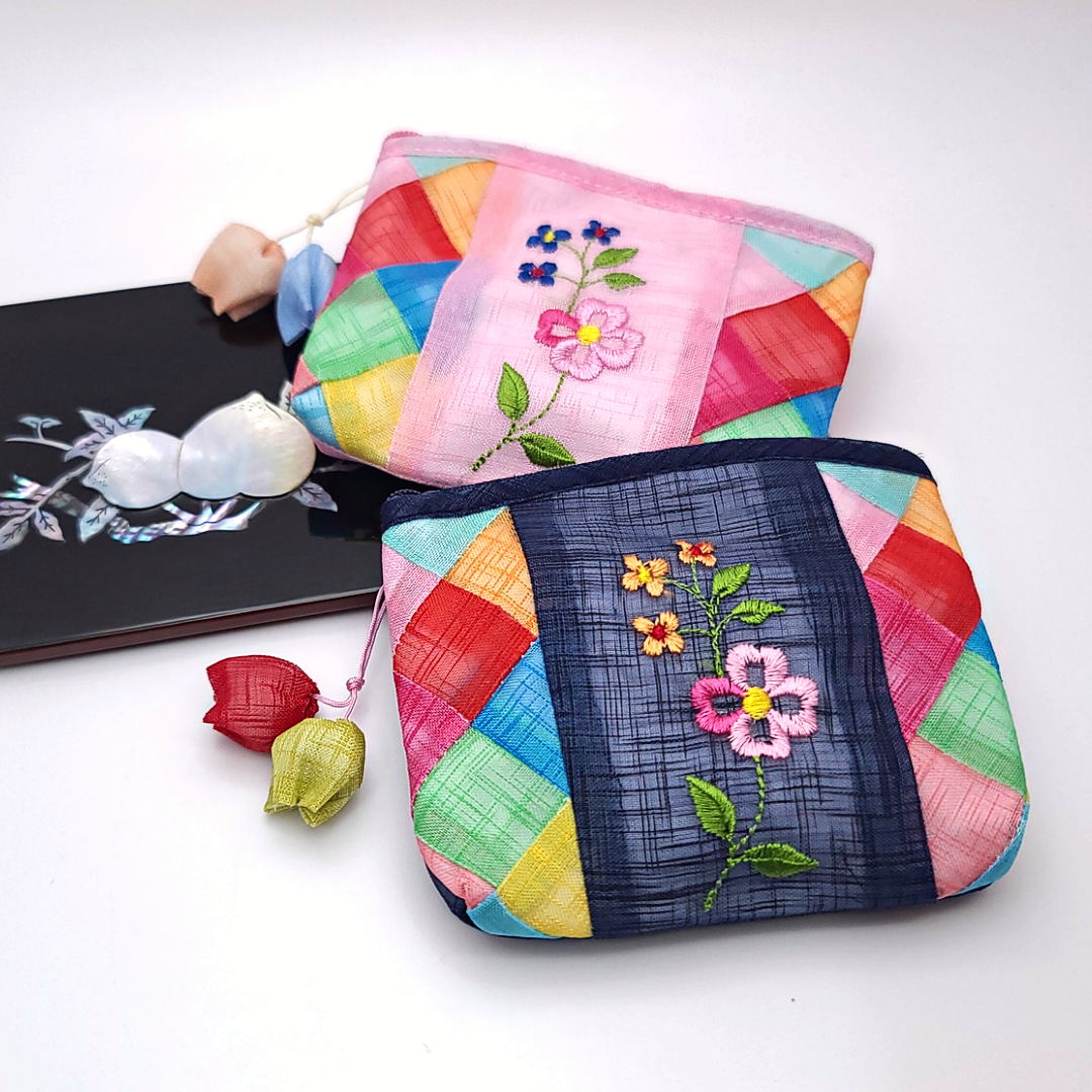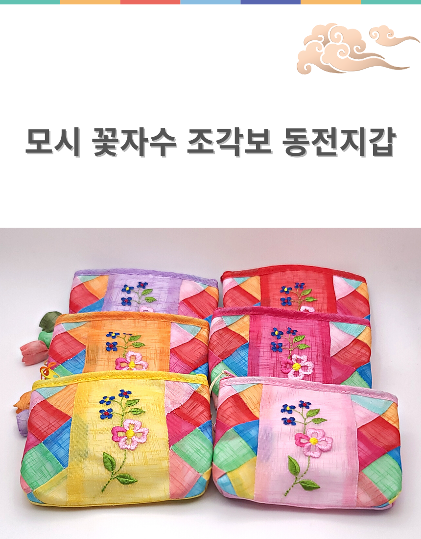모시 꽃자수 조각보 동전지갑 미니 파우치