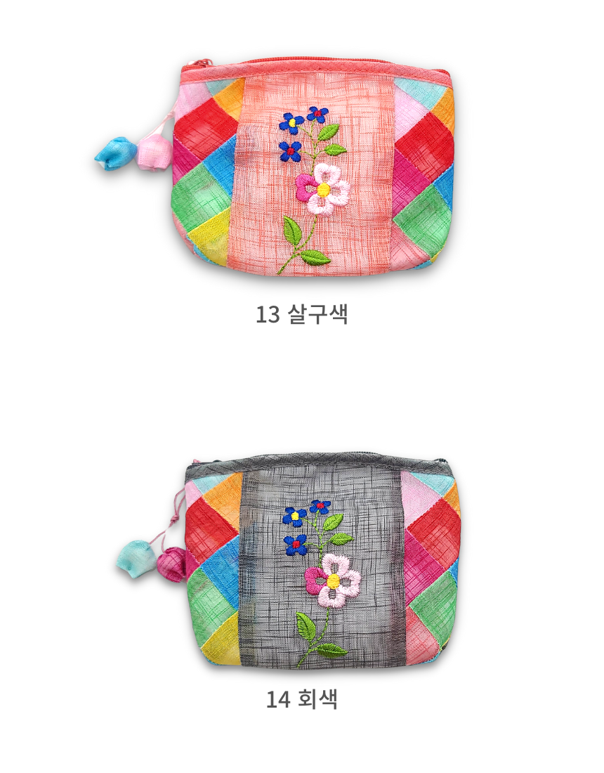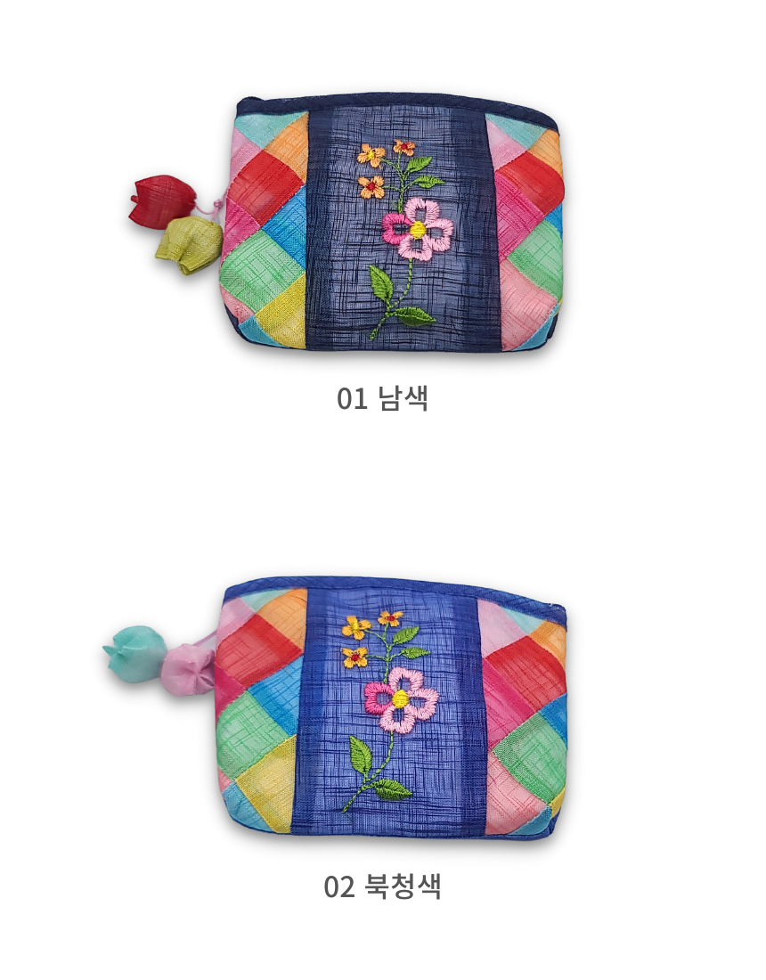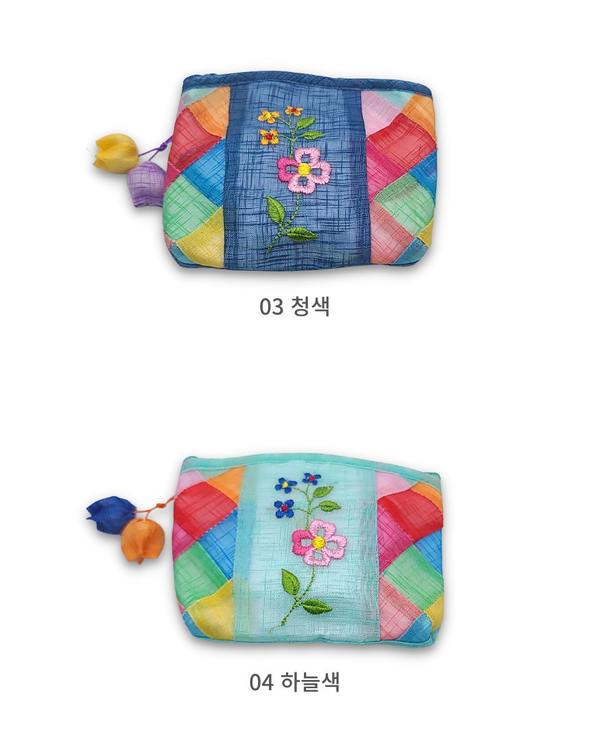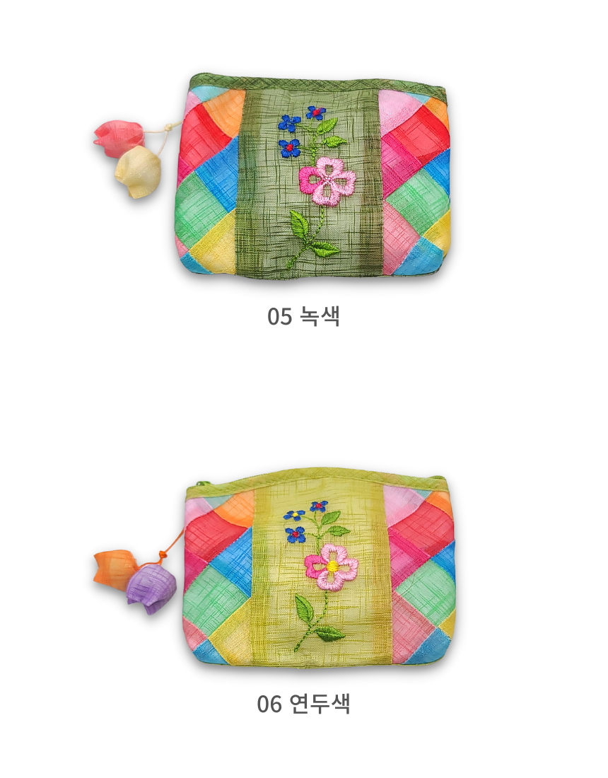 모시 꽃자수 조각보 동전지갑 미니 파우치