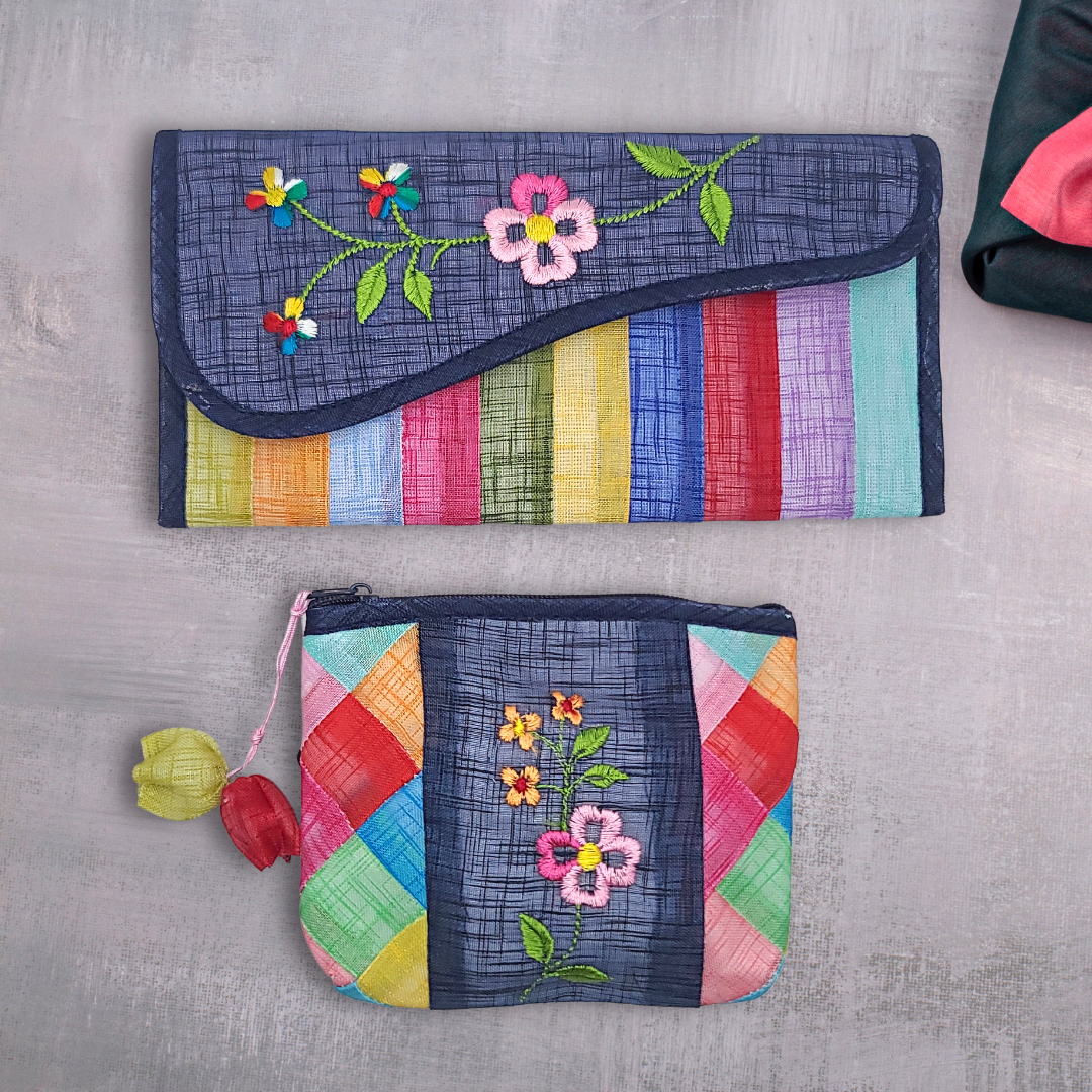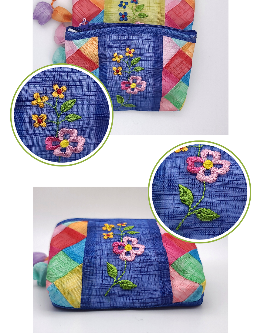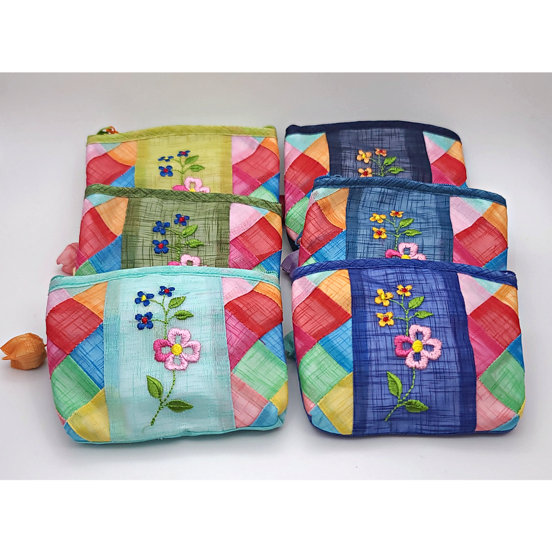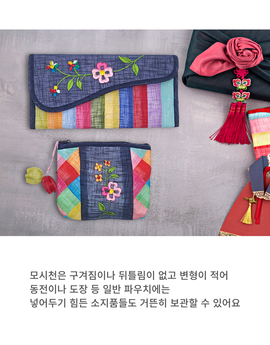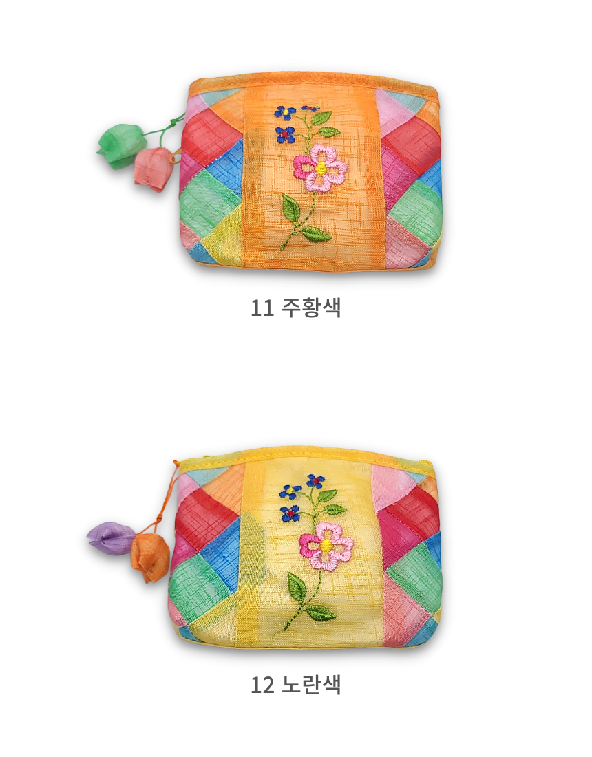 모시 꽃자수 조각보 동전지갑 미니 파우치