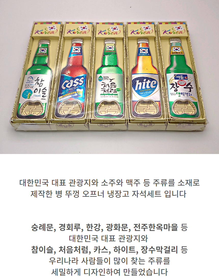 관광지 소주 맥주 막걸리 병따개 오프너 자석 세트