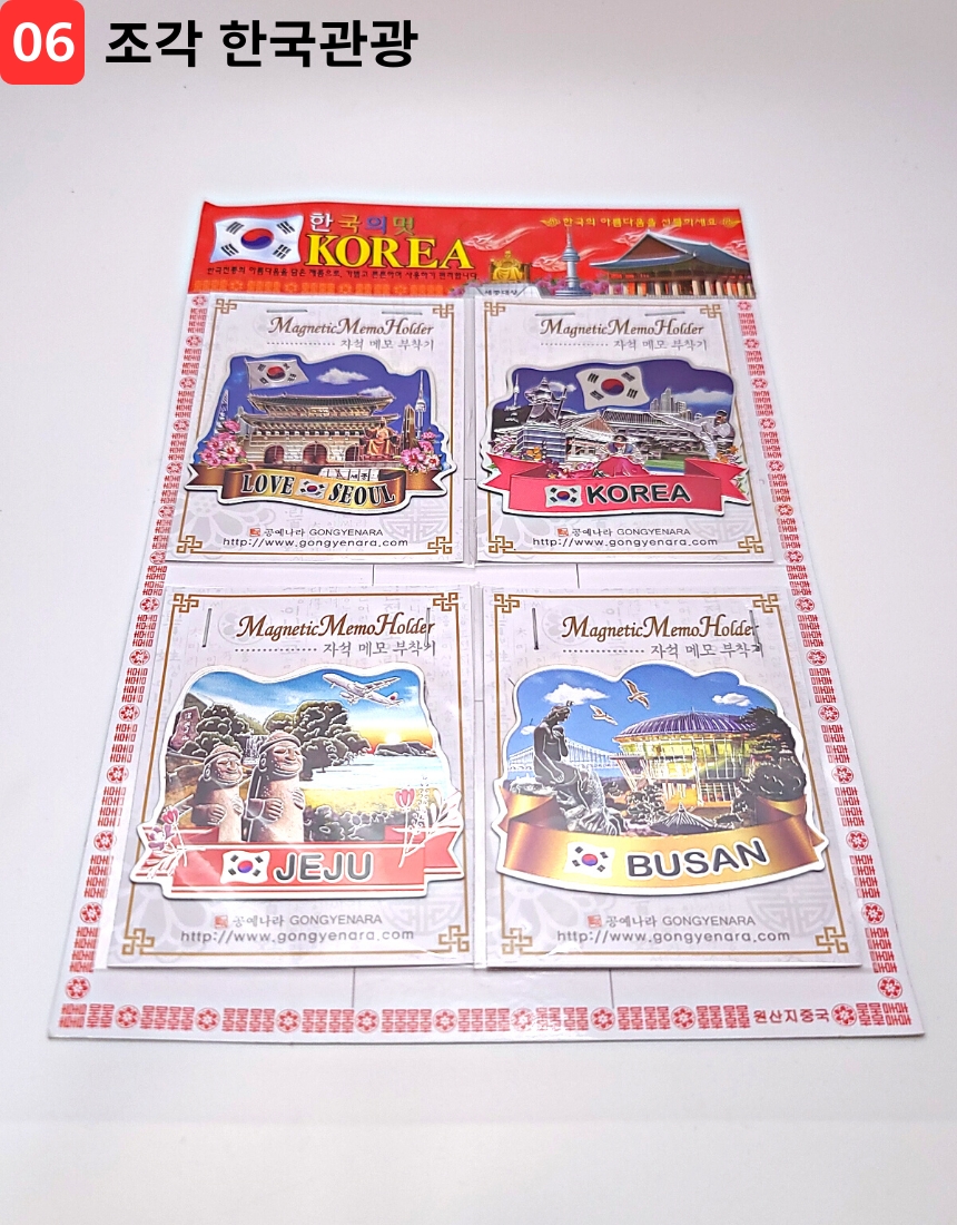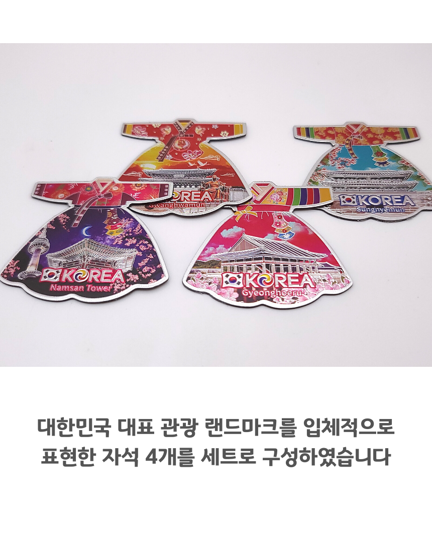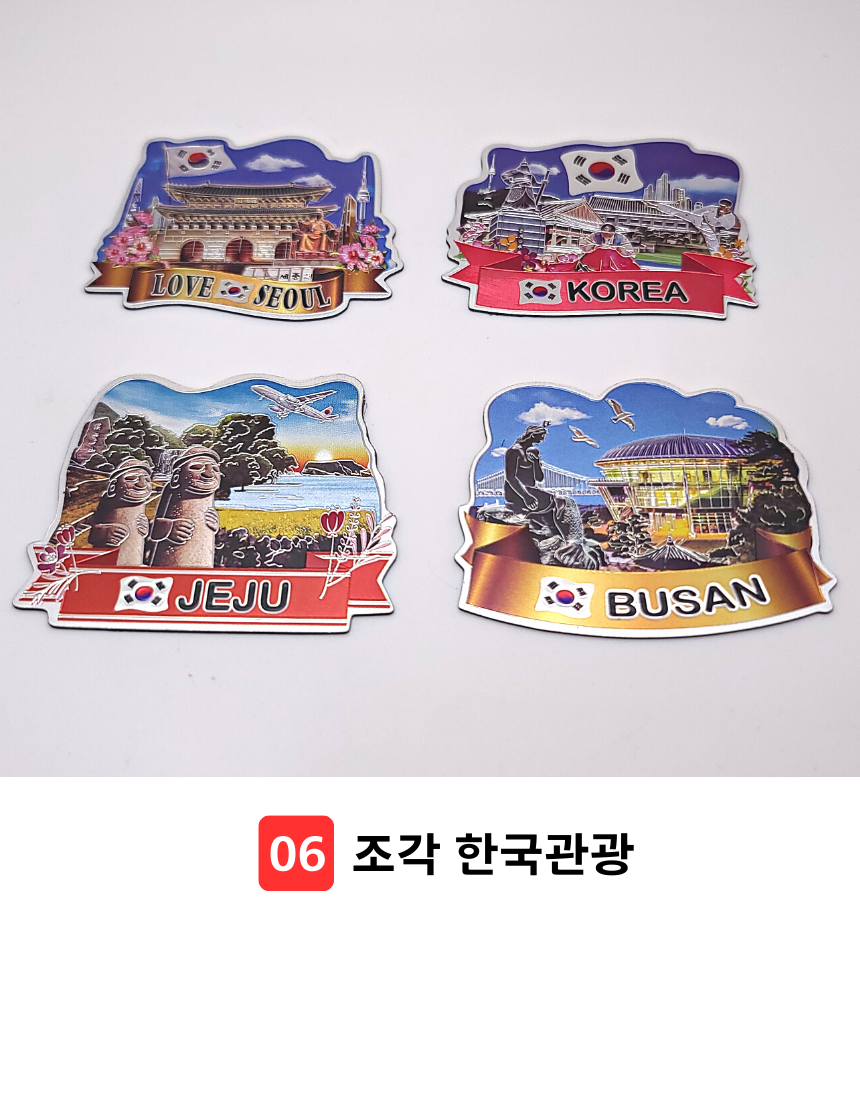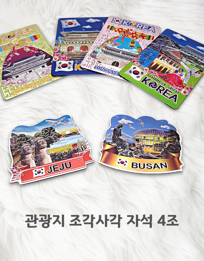 한국 기념품 관광지 사각조각 자석 4조 세트 6종 마그넷 외국인 선물