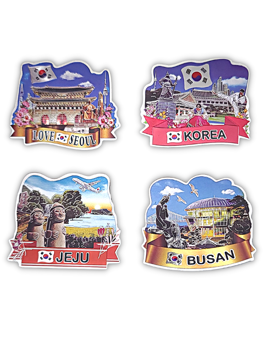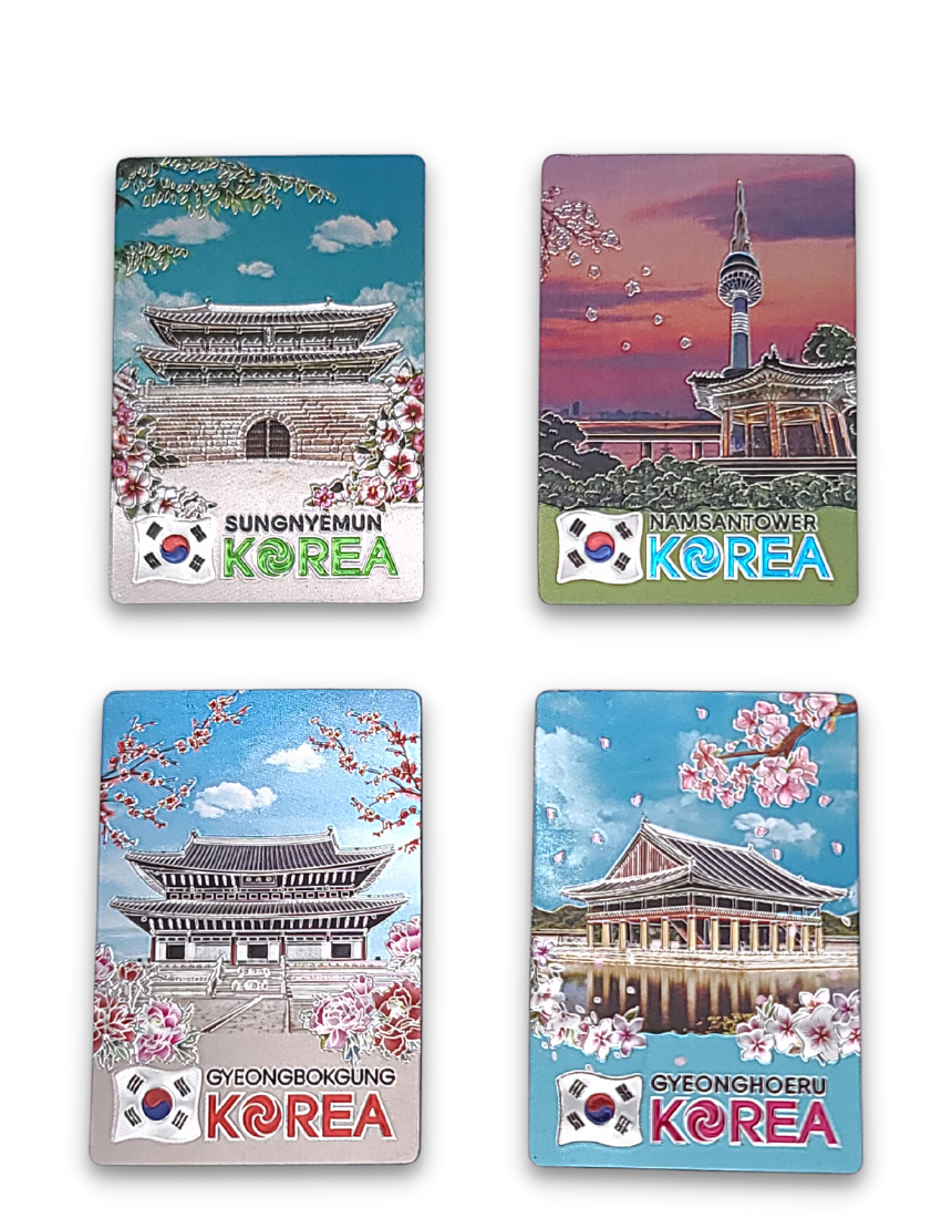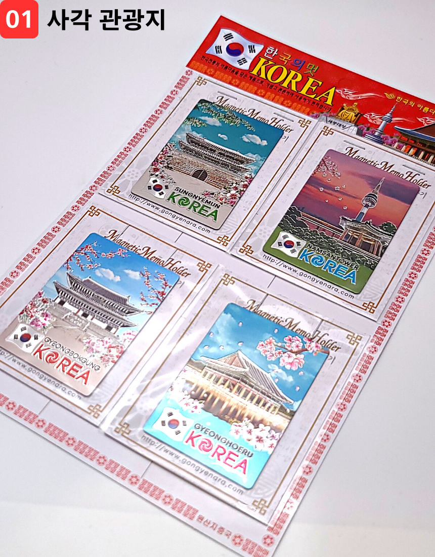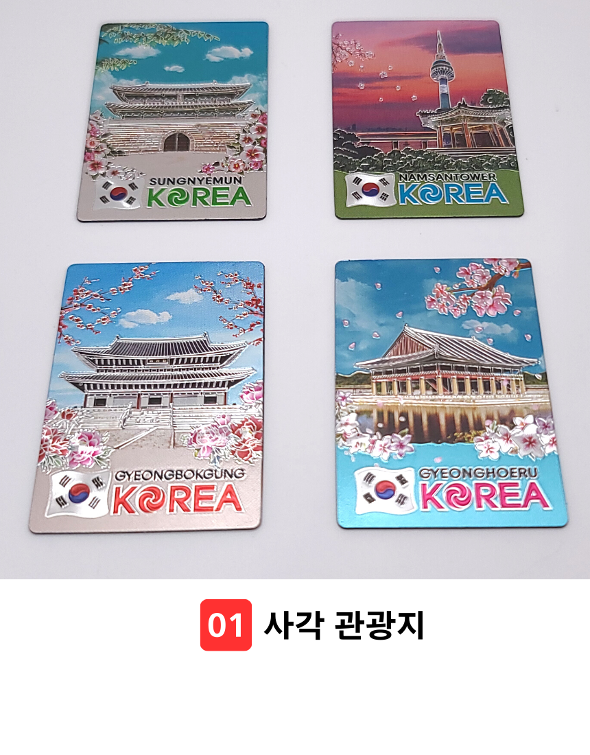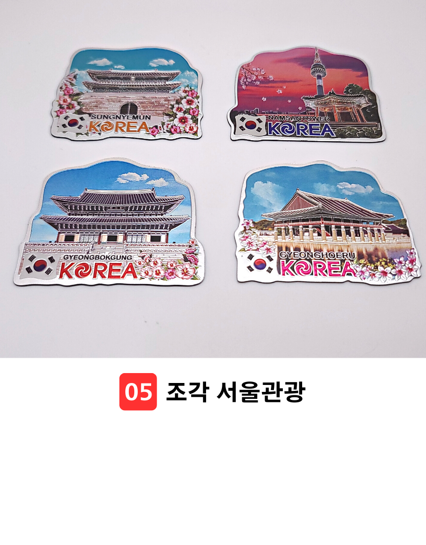 한국 기념품 관광지 사각조각 자석 4조 세트 6종 마그넷 외국인 선물