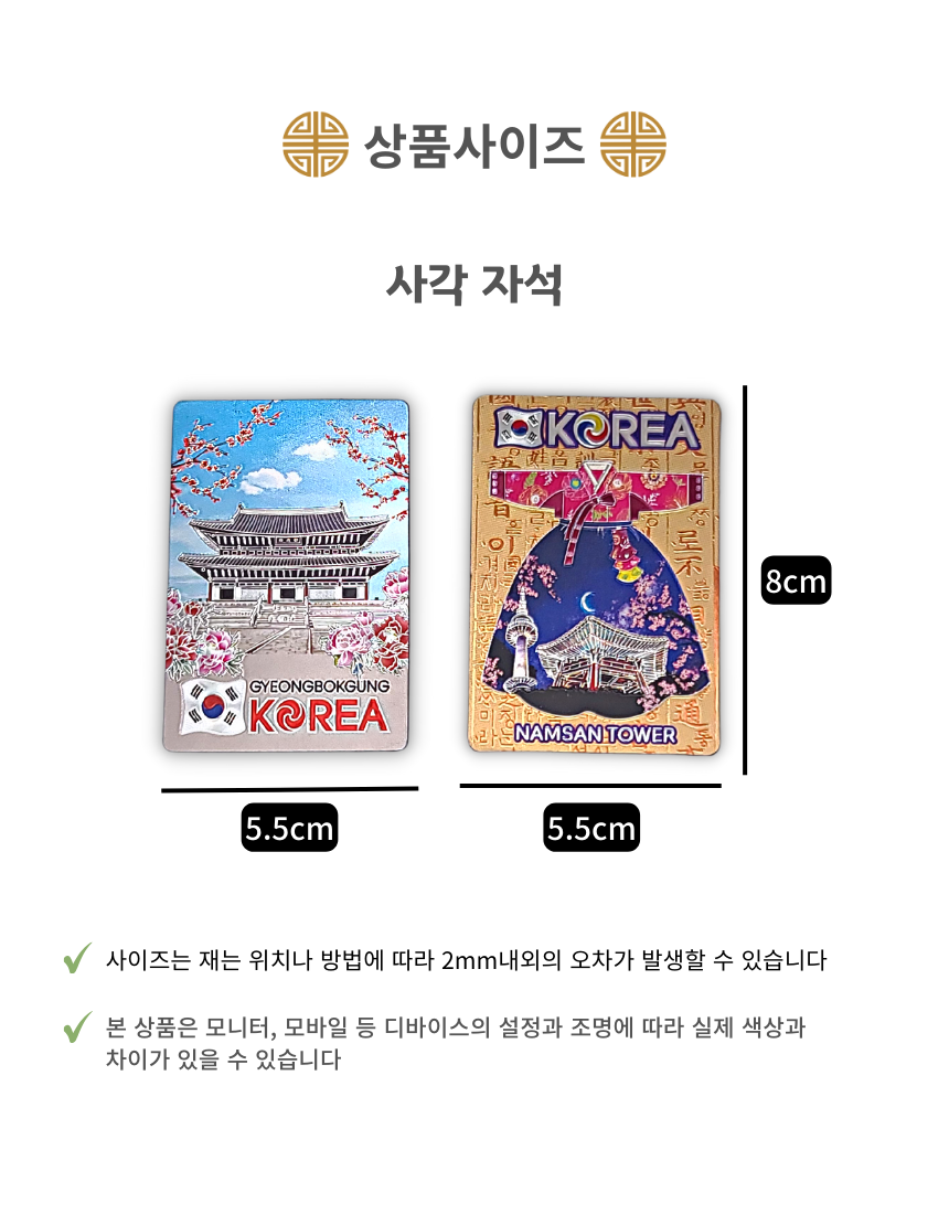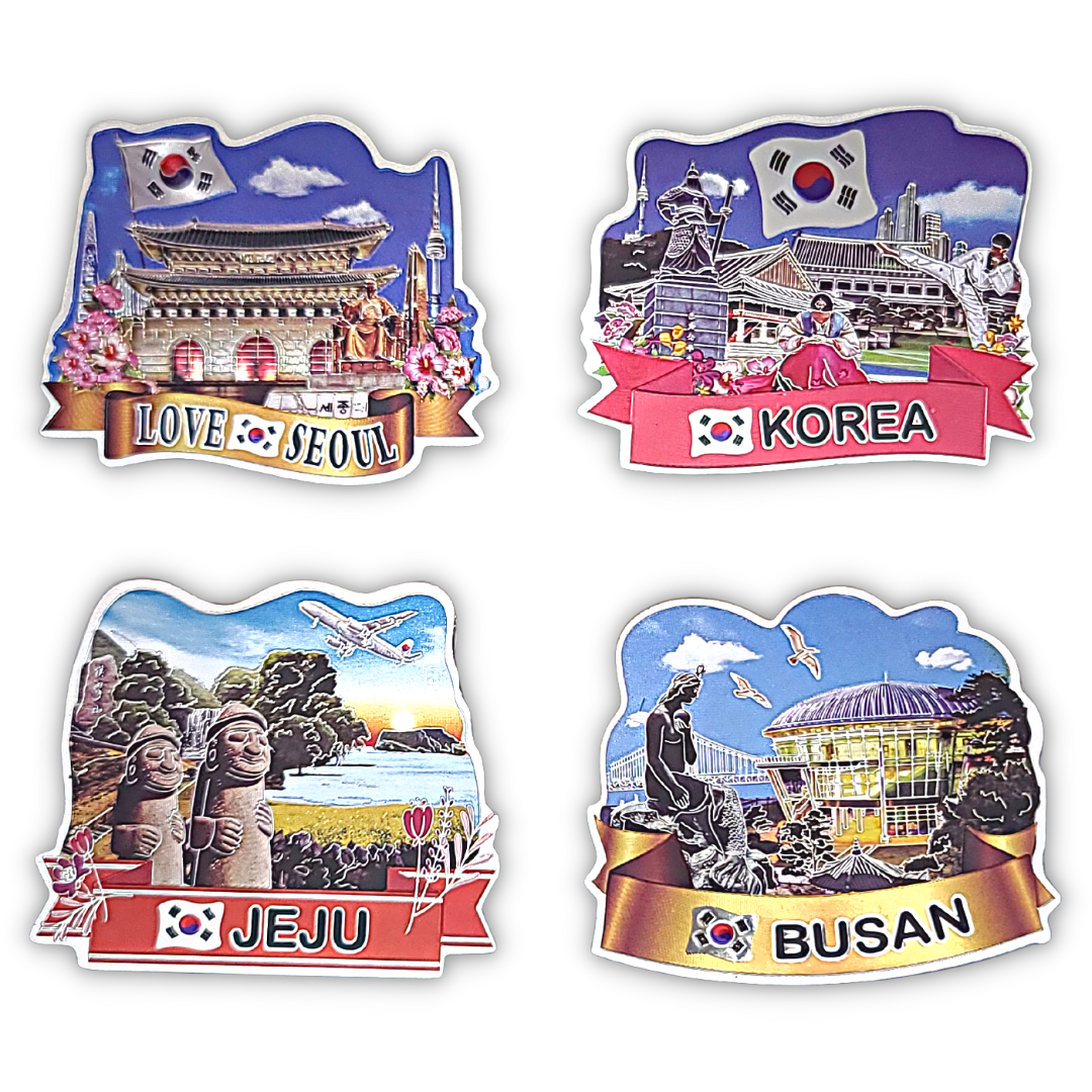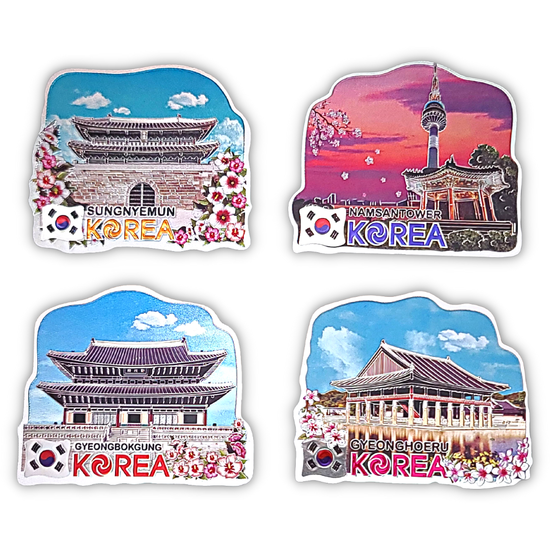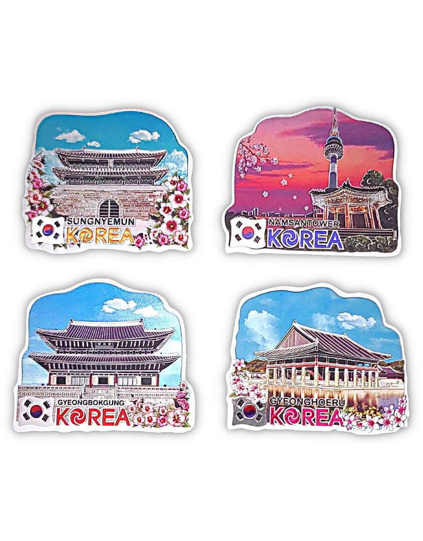 한국 기념품 관광지 사각조각 자석 4조 세트 6종 마그넷 외국인 선물