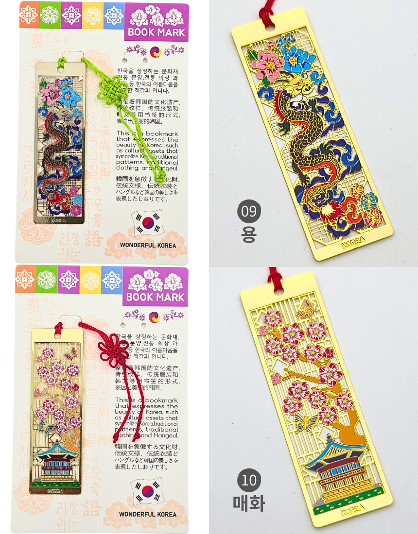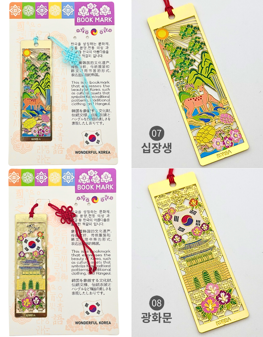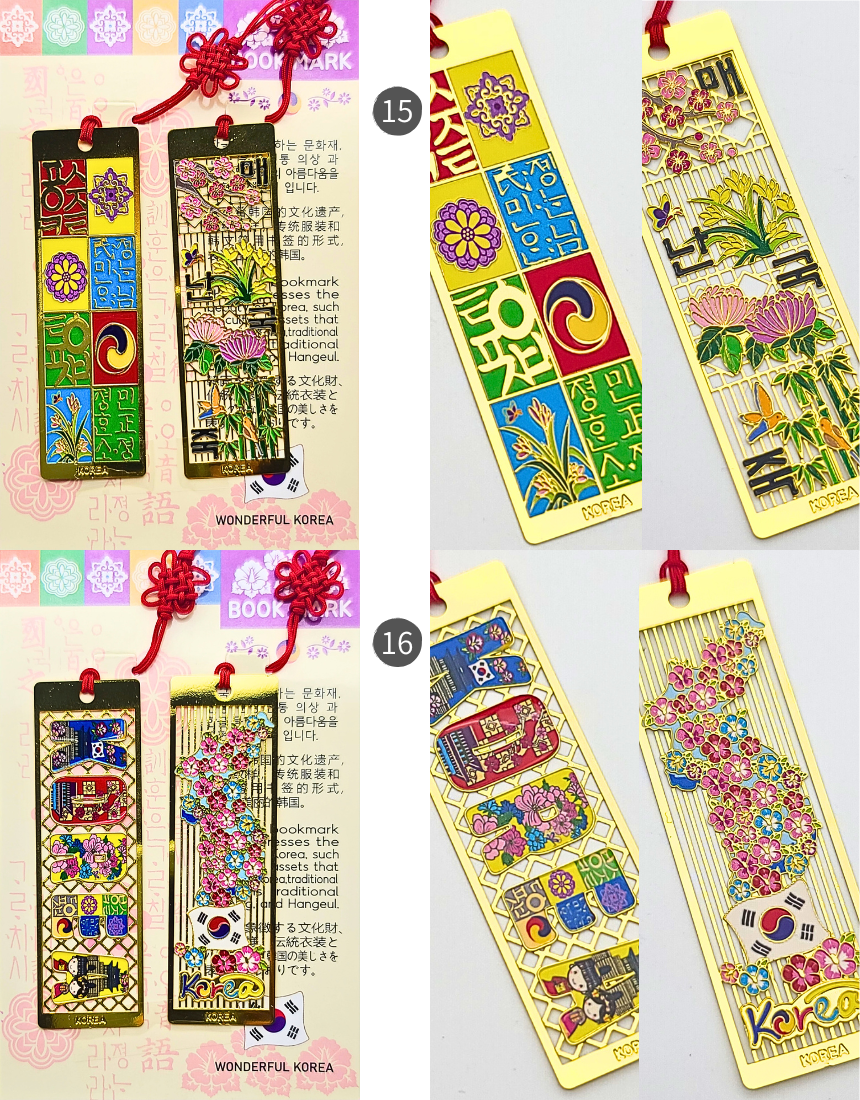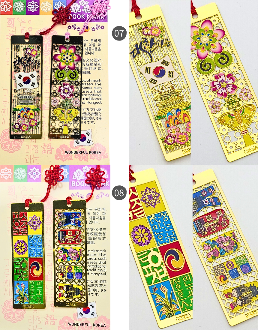 한국 전통 금속 직사각 책갈피 북마크 세트 외국인 선물 기념품