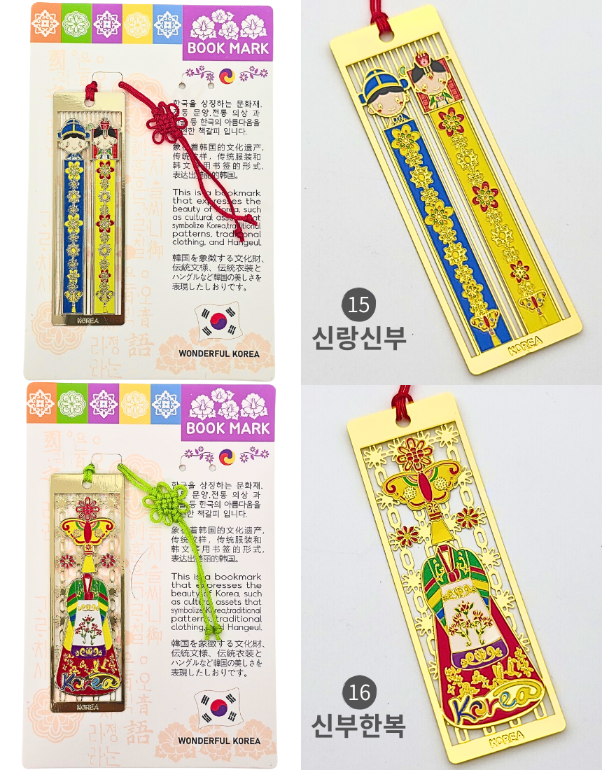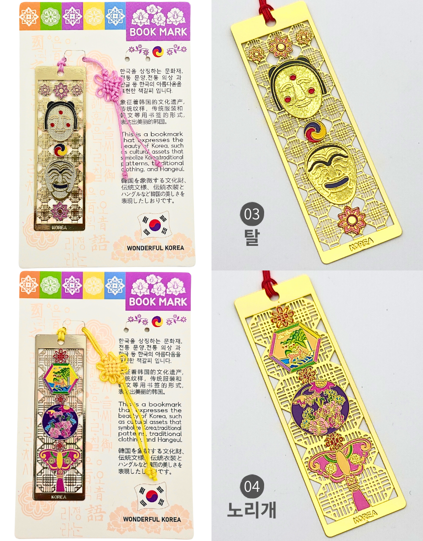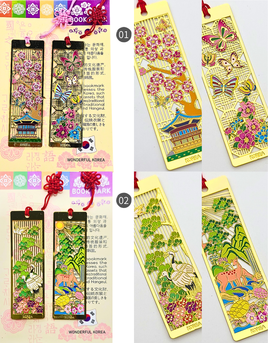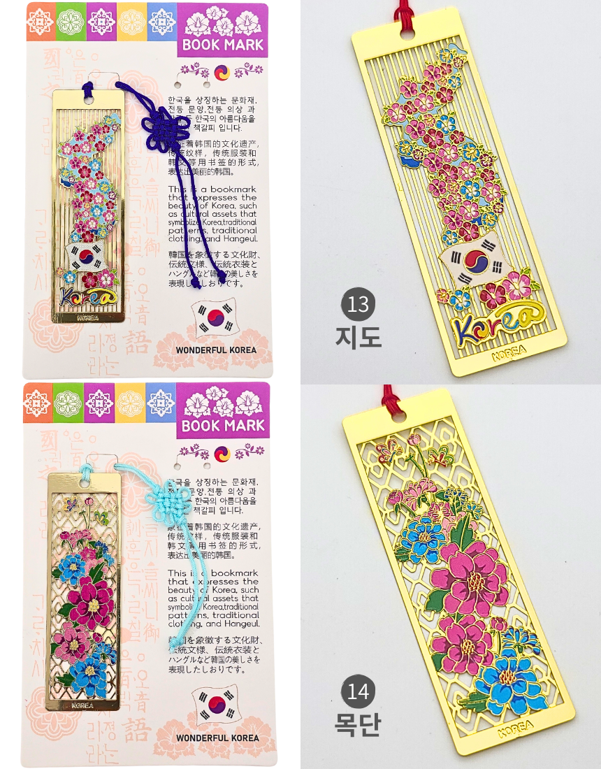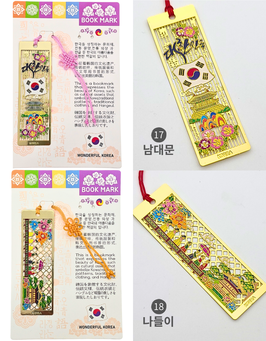한국 전통 금속 직사각 책갈피 북마크 세트 외국인 선물 기념품