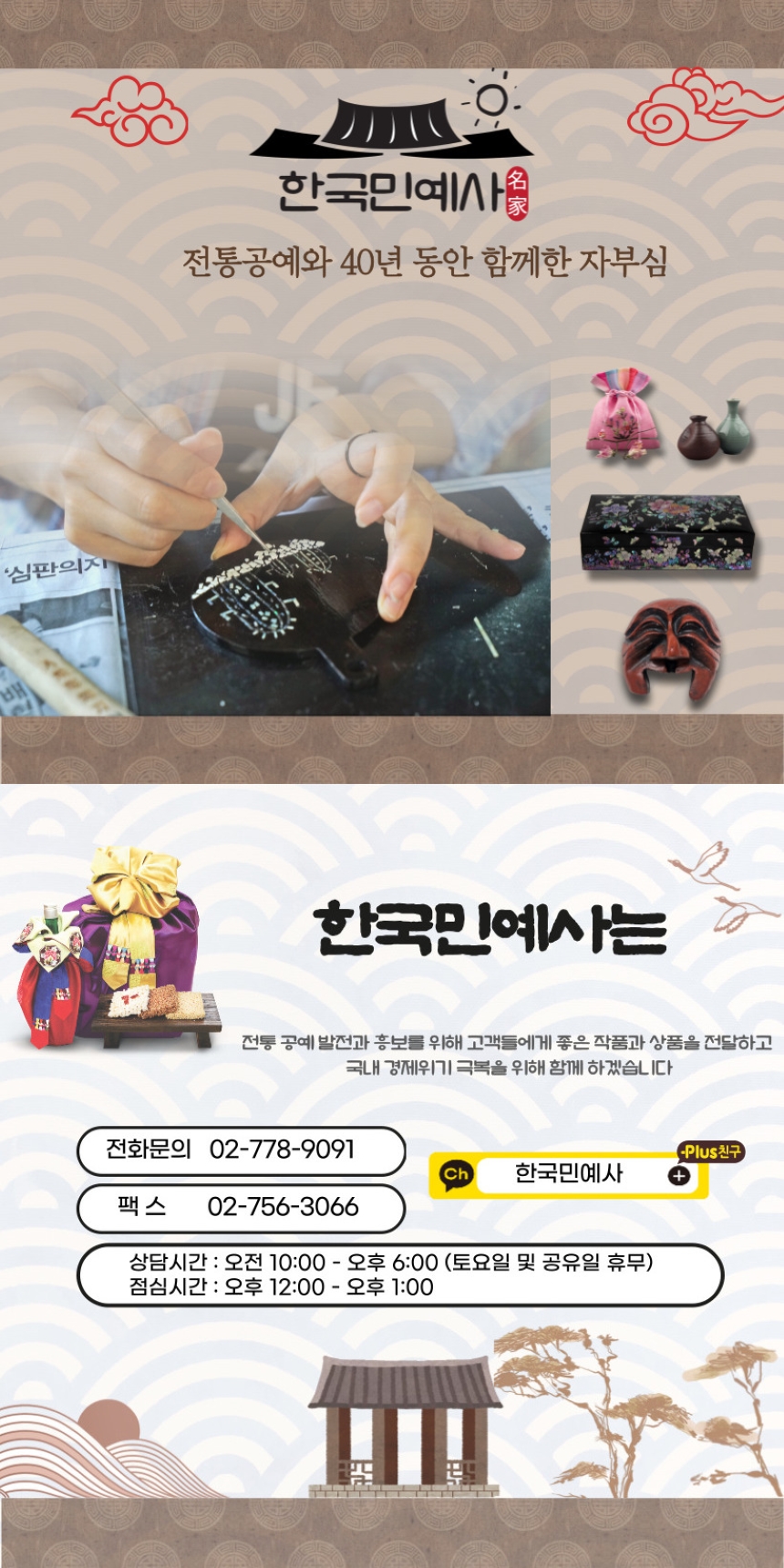 상호명 :  한국민예사   ㅣ   대표자 : 박동진   ㅣ   전화 : 02-778-9091   ㅣ   팩스 : 02-756-3066   ㅣ   이메일 : hkgongbang@gmail.com