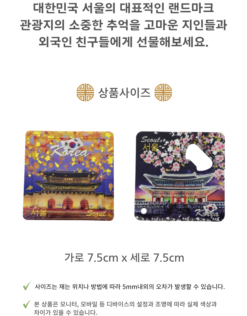 한국기념품 서울 관광 마블 오프너 냉장고 자석 마그넷 세트 외국인선물