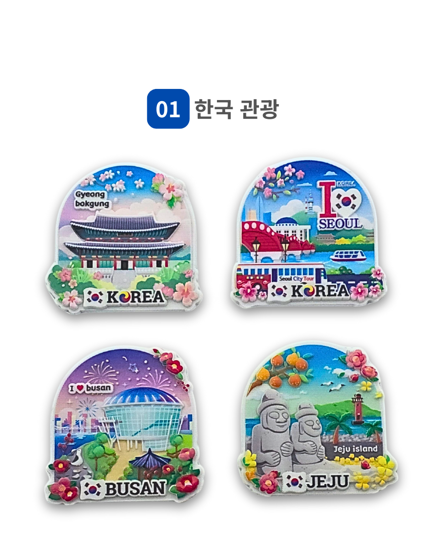 코리아 서울 부산 제주 한복 관광 입체 자석 세트 한국 기념품 외국인 선물