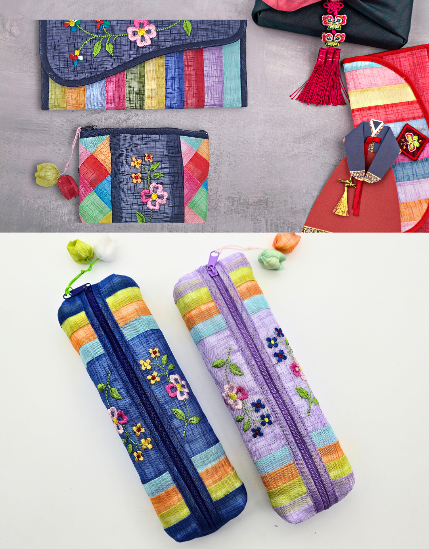 한국 전통 자수 모시 필통 파우치 케이스 외국인 선물 기념품