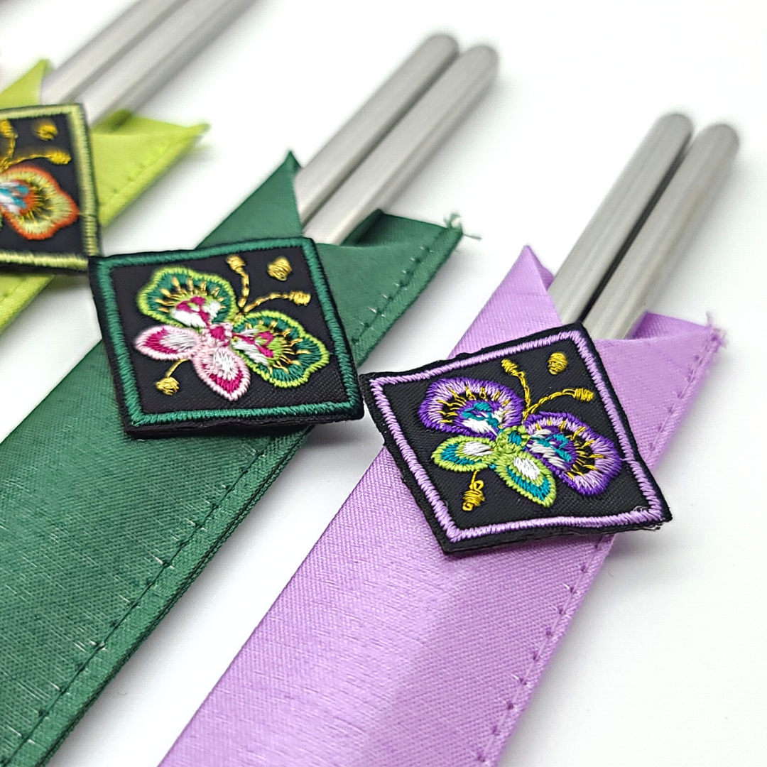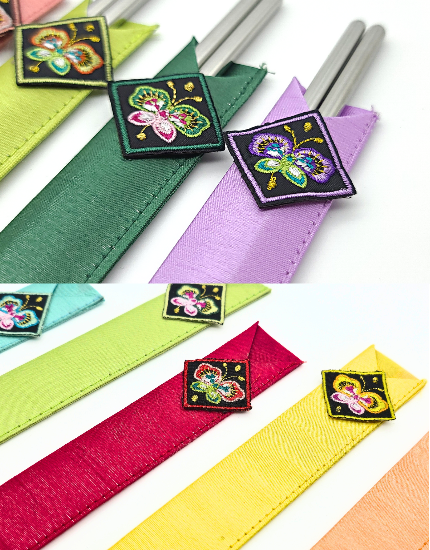 전통 나비 자수 젓가락 수저 커버 케이스