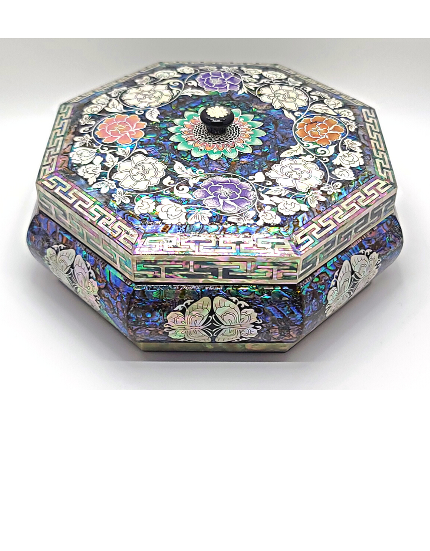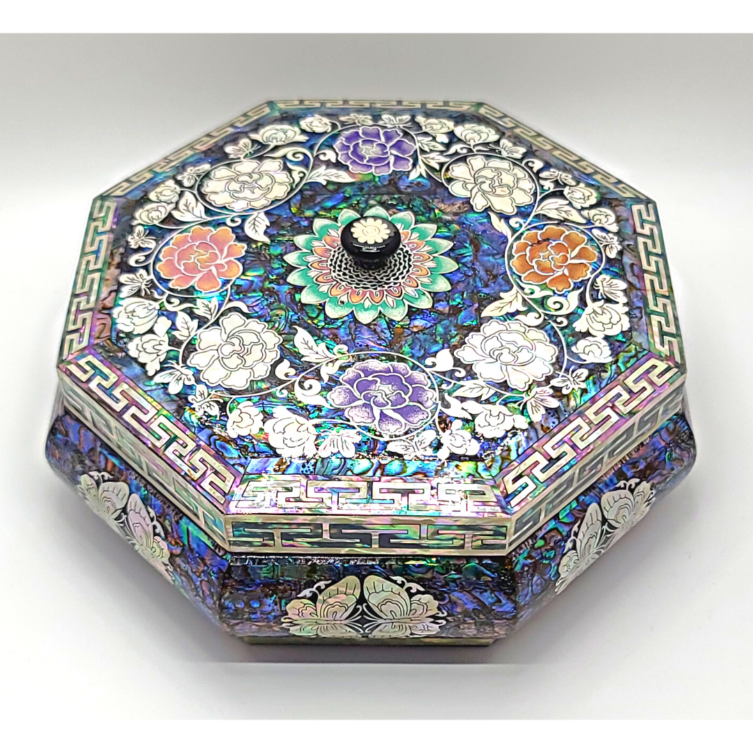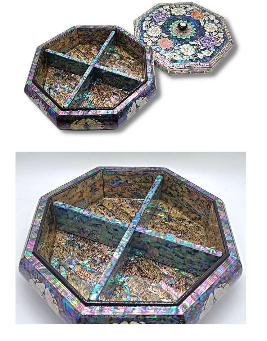 나전칠기 자개 청패 팔각 꼭지 목단 다용도 캔디볼함 외국인 선물 박인호 작품