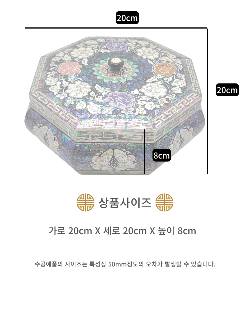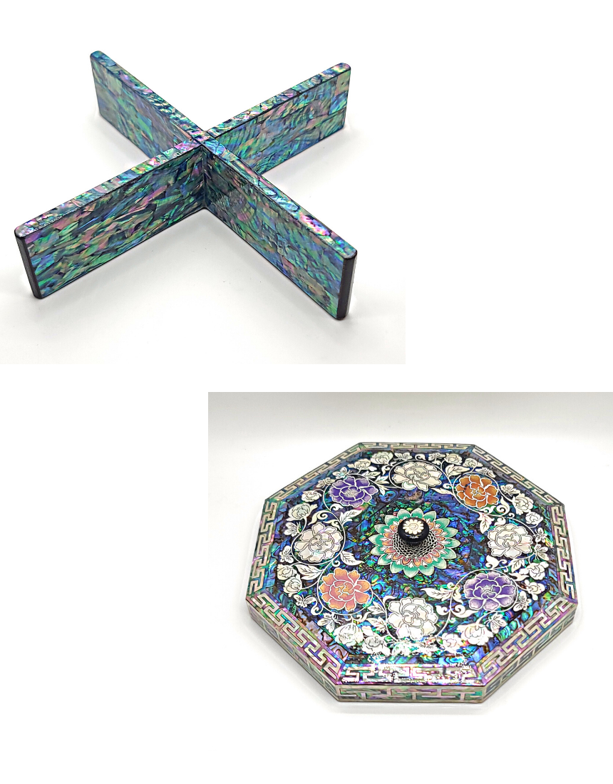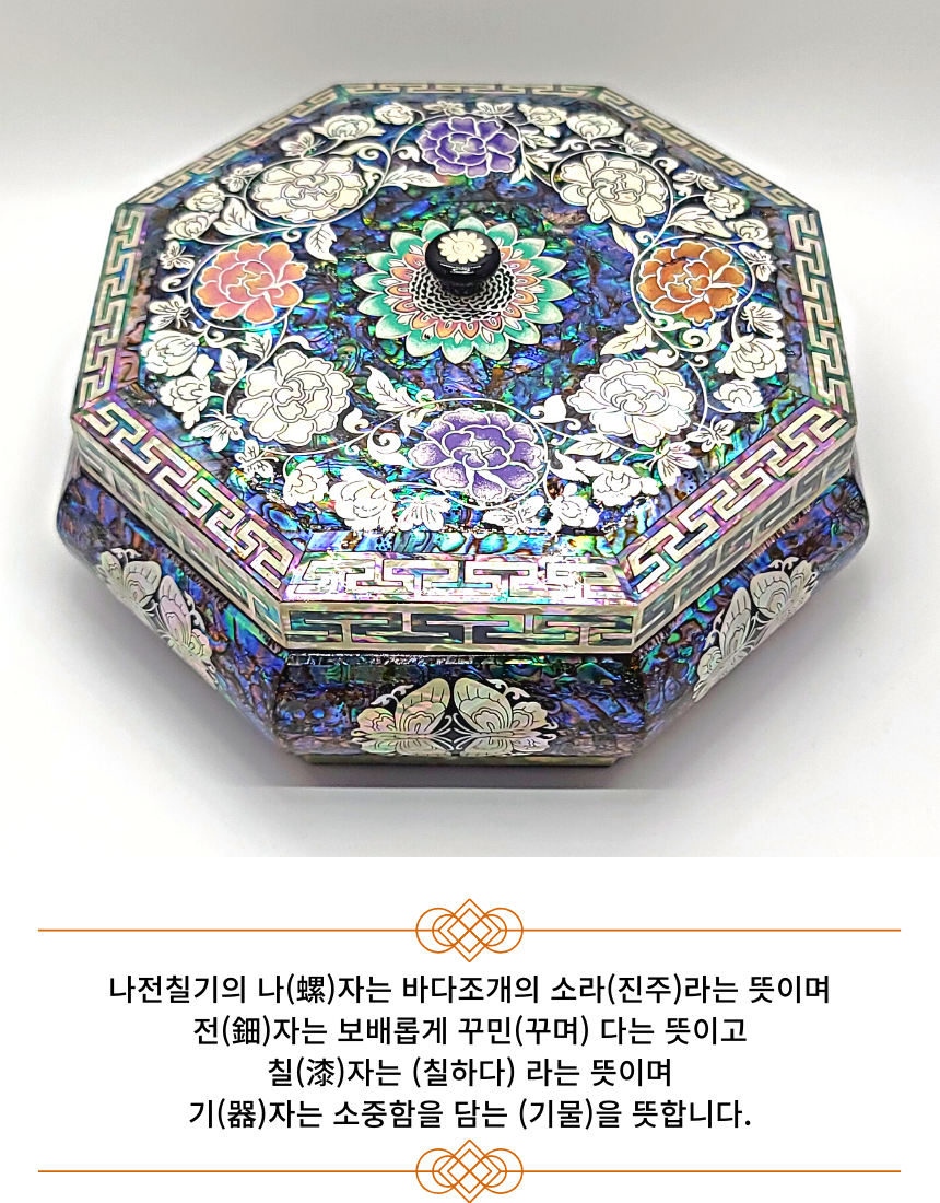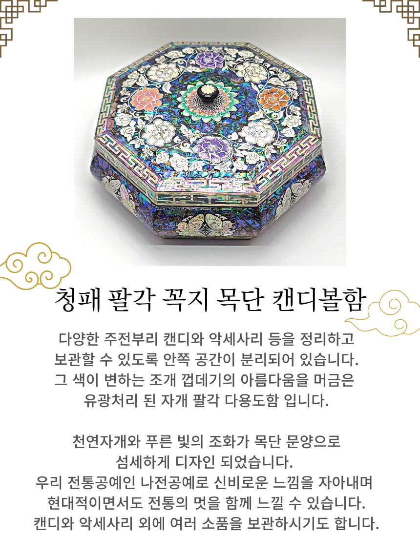 나전칠기 자개 청패 팔각 꼭지 목단 다용도 캔디볼함 외국인 선물 박인호 작품