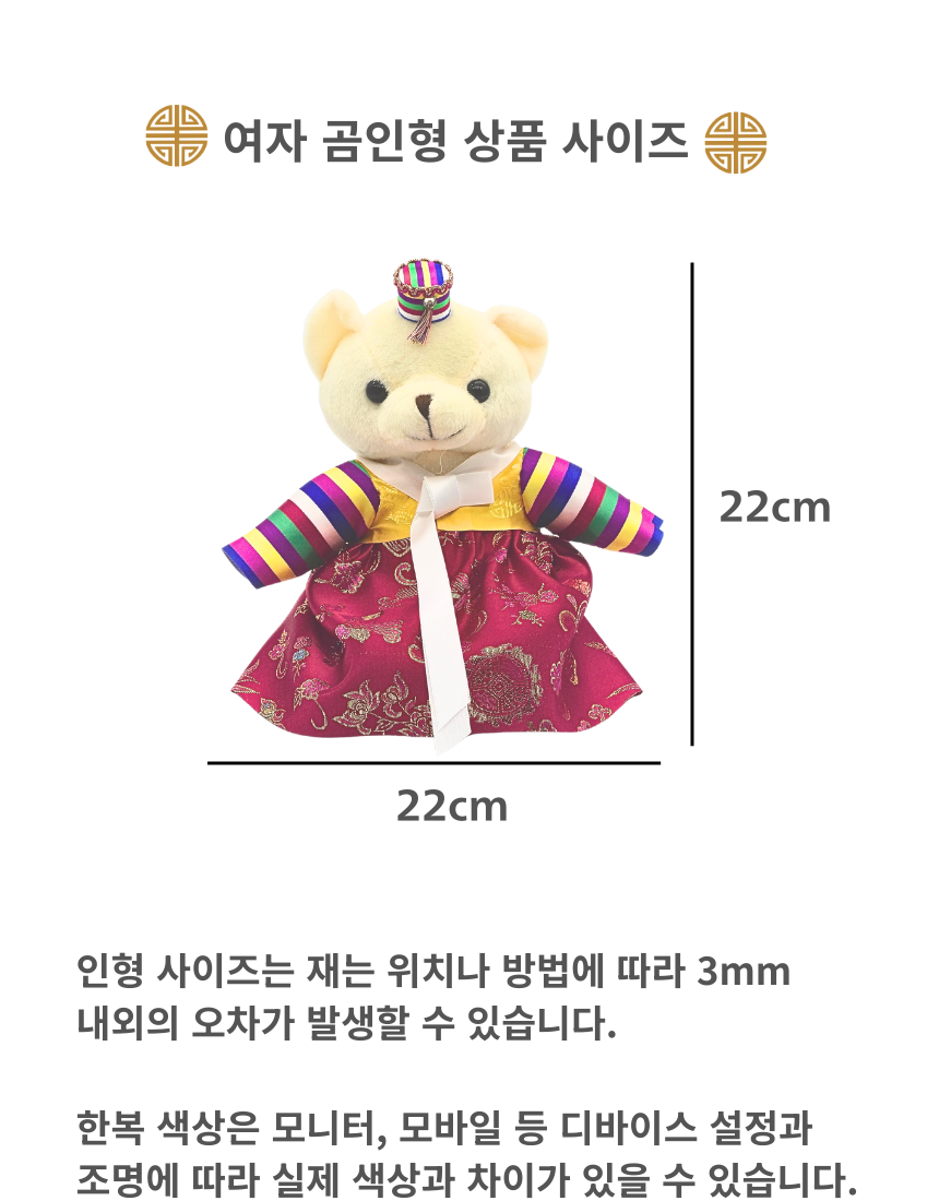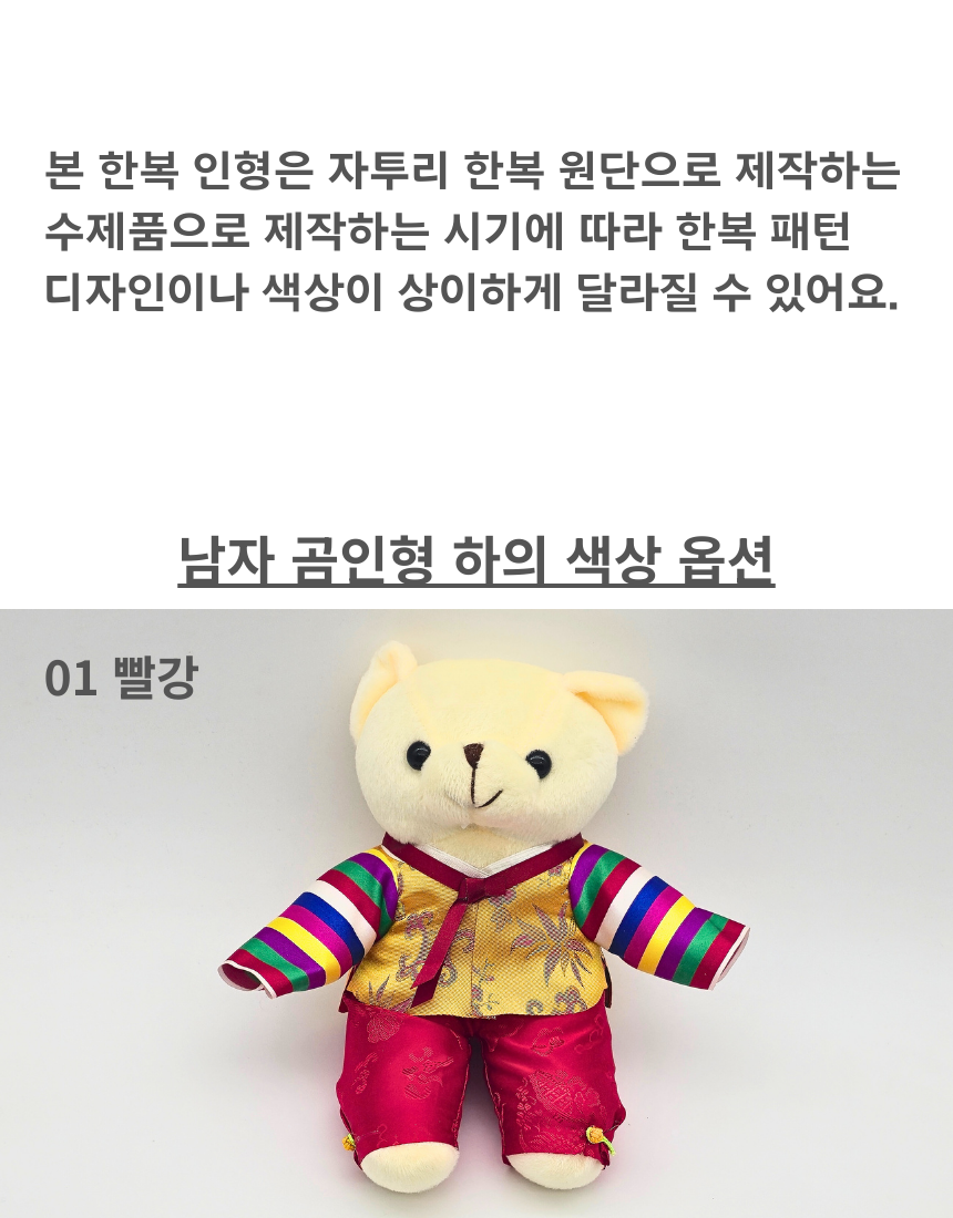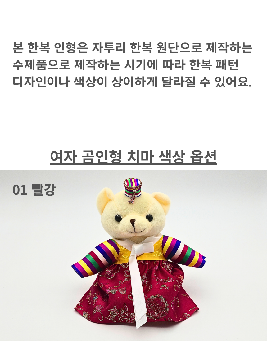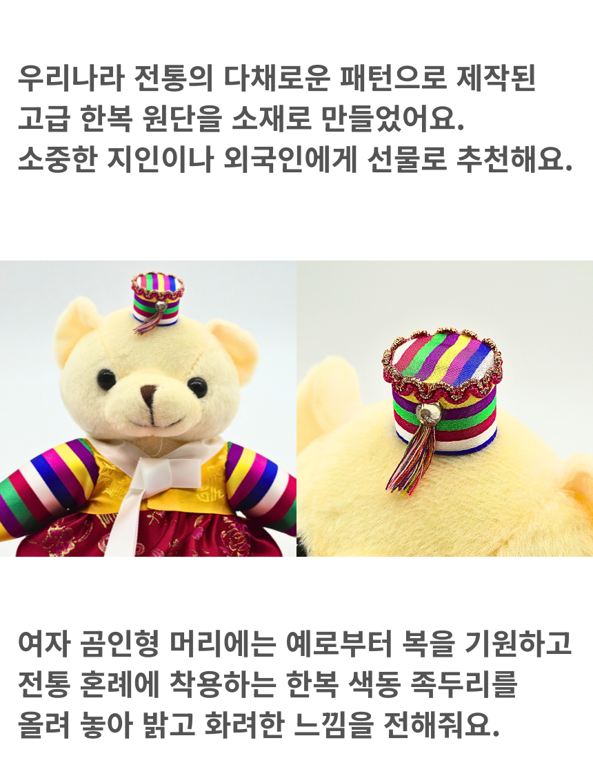 전통 색동 한복 인형 곰돌이 곰인형 한국 기념품 외국인 선물